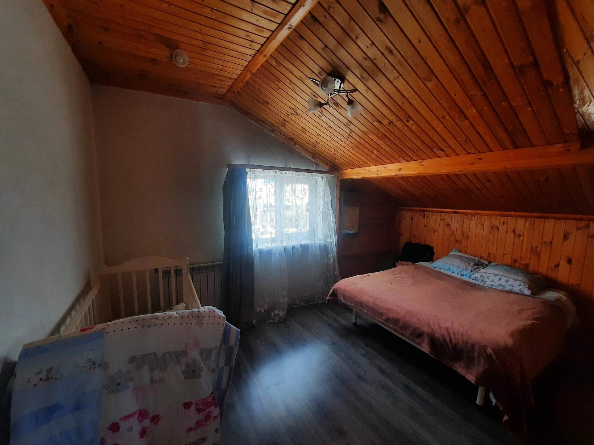 На втором этаже: четыре отдельные спальни, с одной из комнат выход на балкон, сан узел с ванной. На полу ламинат, межкомнатные двери и потолки деревянные. В подвале дома расположены овощная яма, технический подвал для отопительного и водоснабжающего оборудования, кладовая, подсобные помещения.