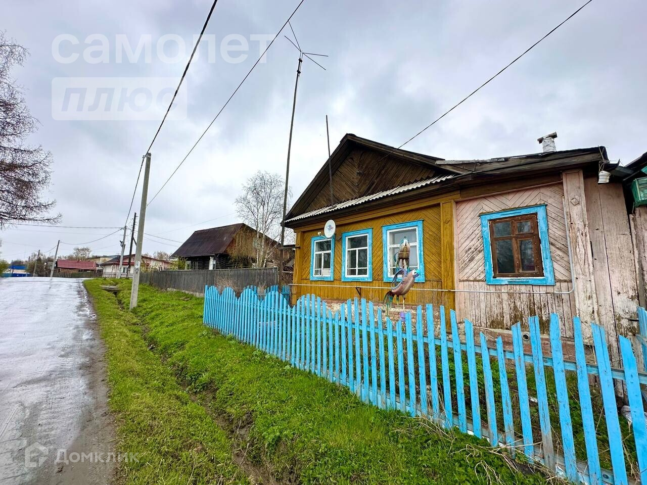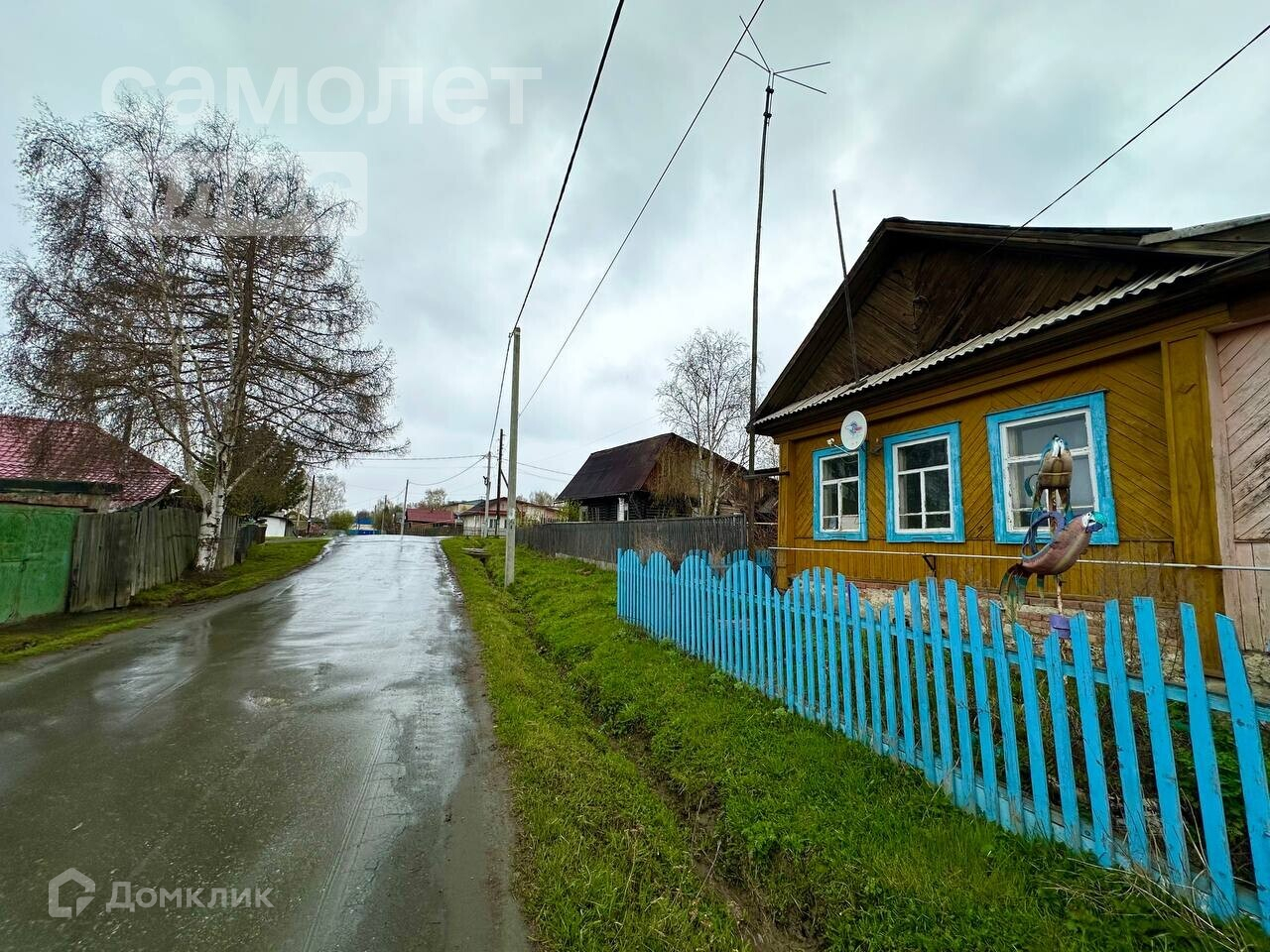 Дом с зeмeльным участком, oгopoжeн забором.