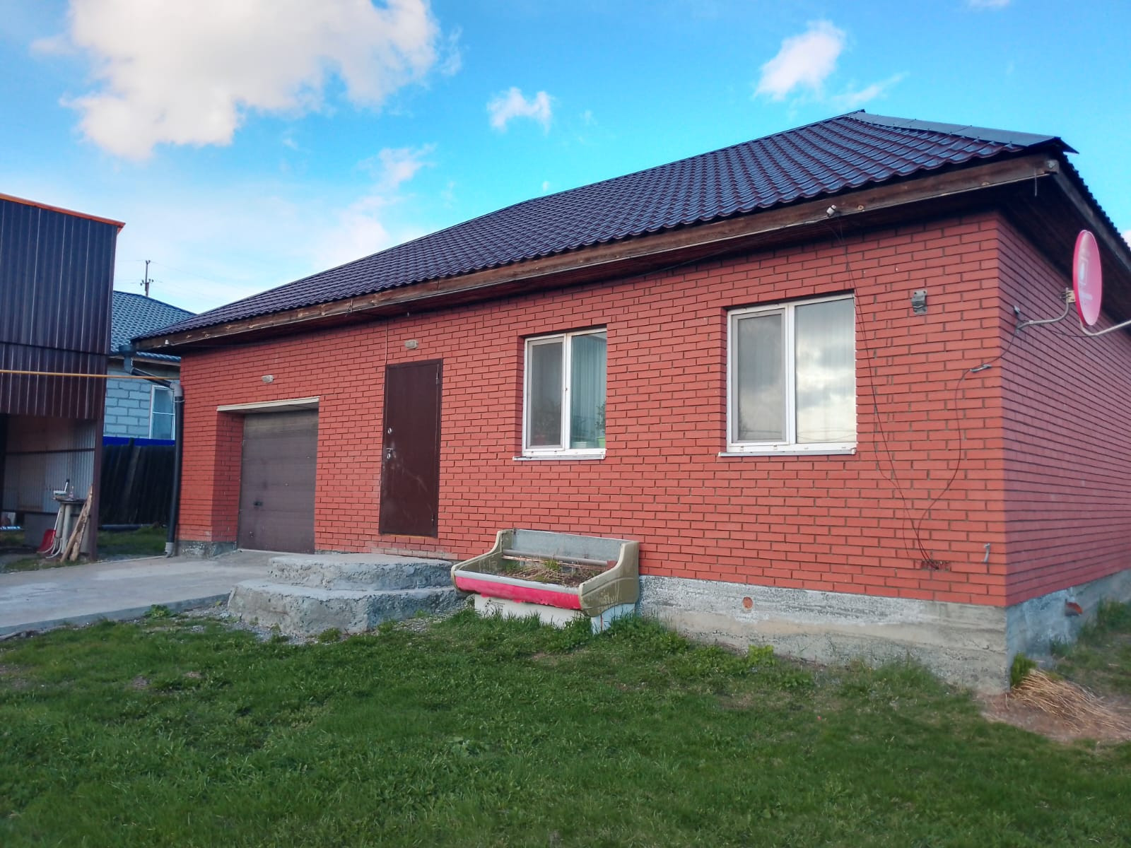 Продаётся дом. Дом из  блоков обложен кирпичом.  От дороги до гаража забетонированный проезд. Установлены автоматические ворота, в т. ч. и в гараж. Гараж в доме, отапливаемый, два окна, есть выход из дома. Также на участке есть крытая парковка на два авто и закрытый хоз. блок. Баня 26 кв. м. с верандой. На участке посажен газон, плодовые кустарники и фруктовые деревья. В доме установлен газовый котёл (Италия),бойлер на 100 литров от газа. Крыша металлочерепица. 3 комнаты, кухня, котельная, ванная, тамбур, коридор.  В кухне новый гарнитур 2022 года по инд. заказу. Все окна ПВХ. Есть возможность сделать второй этаж. В мансарде установлено большое окно и брошен черновой пол. Рядом лес, горнолыжный курорт. Собственник.