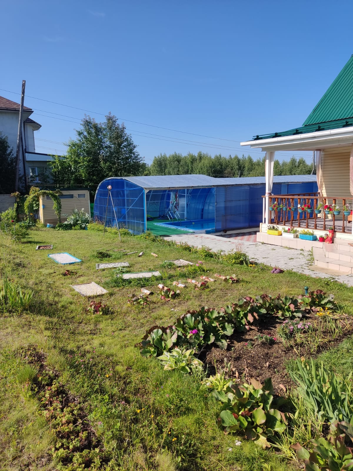 На участке баня 6*6 с бассейном 2*3, с постоянным отоплением и всеми коммуникациями.
