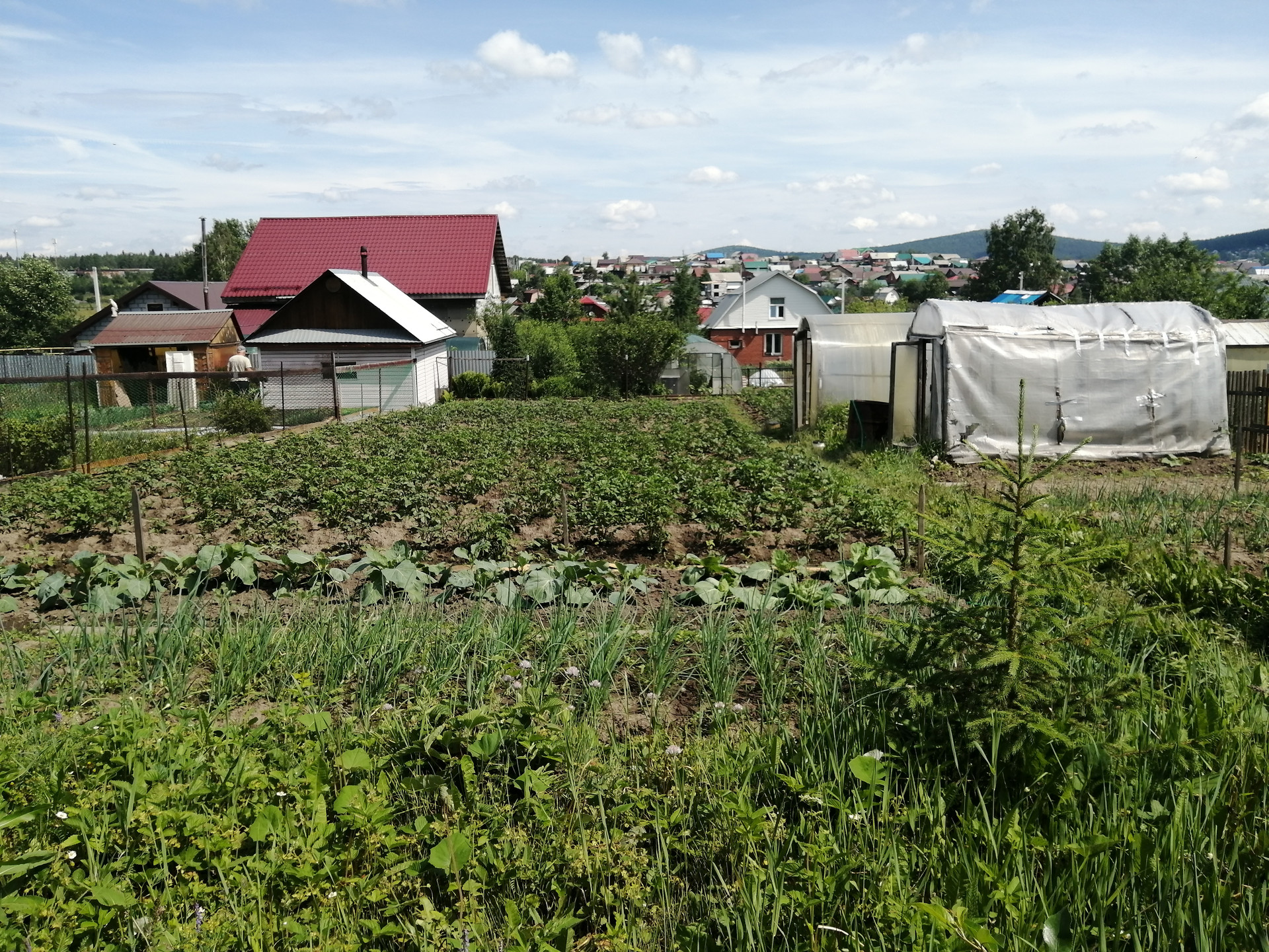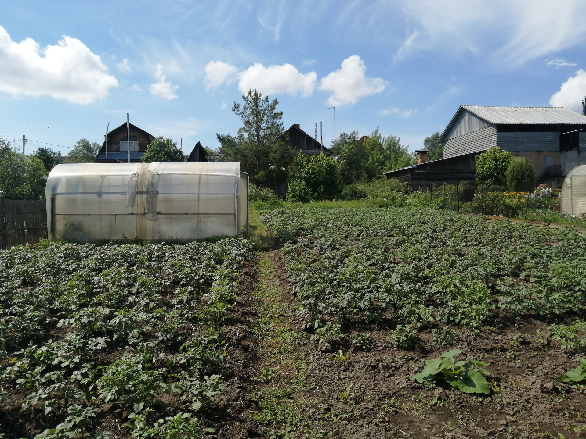 Участок разработан, каждый год засаживается. На участке установлены теплицы и беседка.