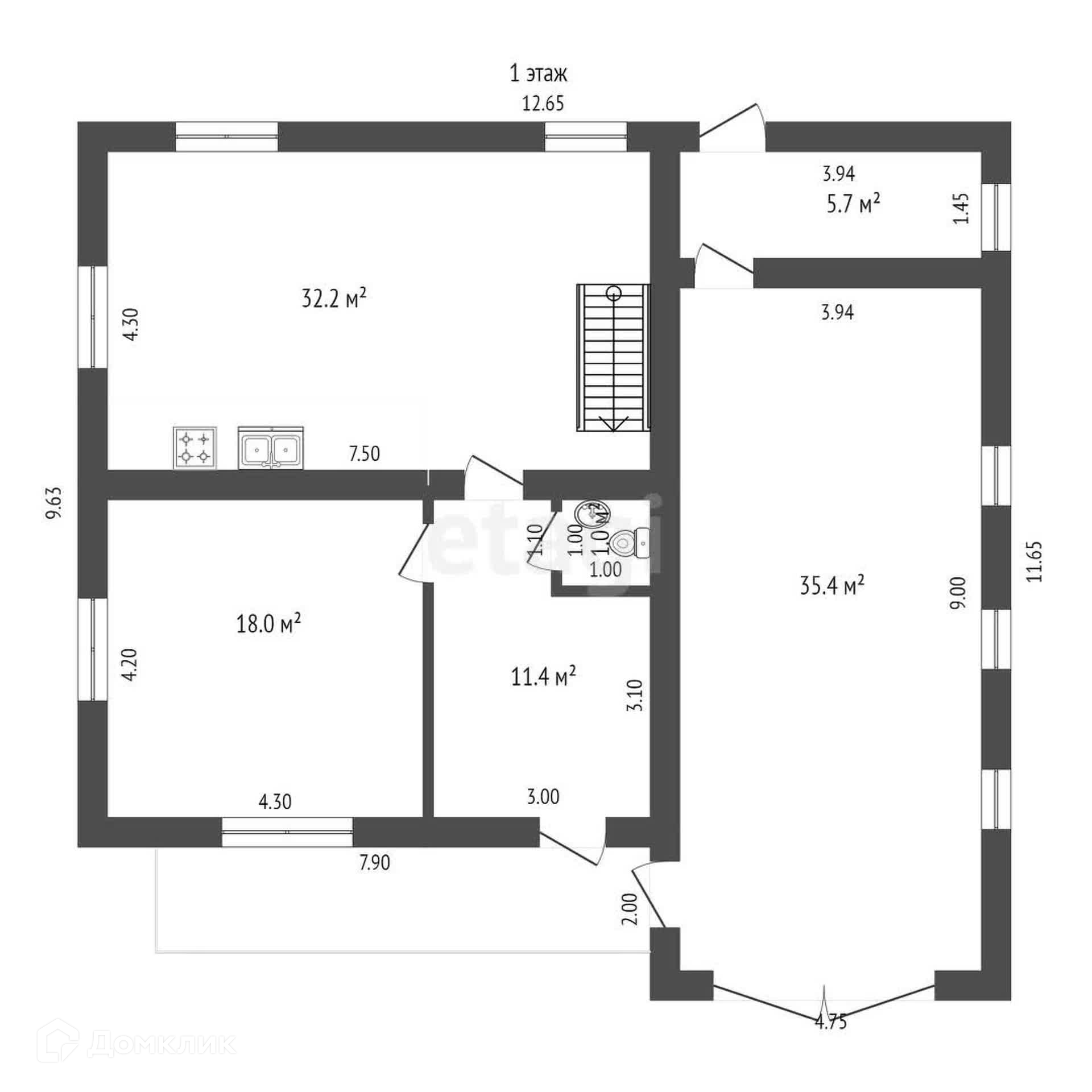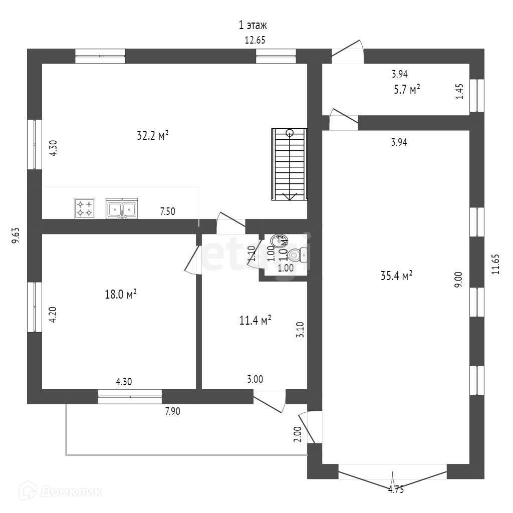 В доме прихожая, 6 комнат (4 спальни+ зал), зал объединена с кухней, котельная, 2 санузла, одна кладовка, которые можно переоборудовать под свои нужды.