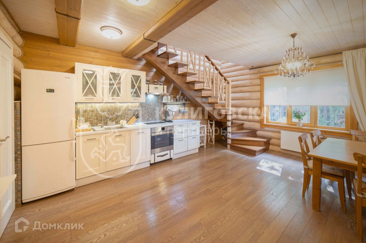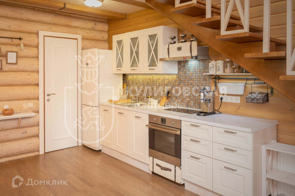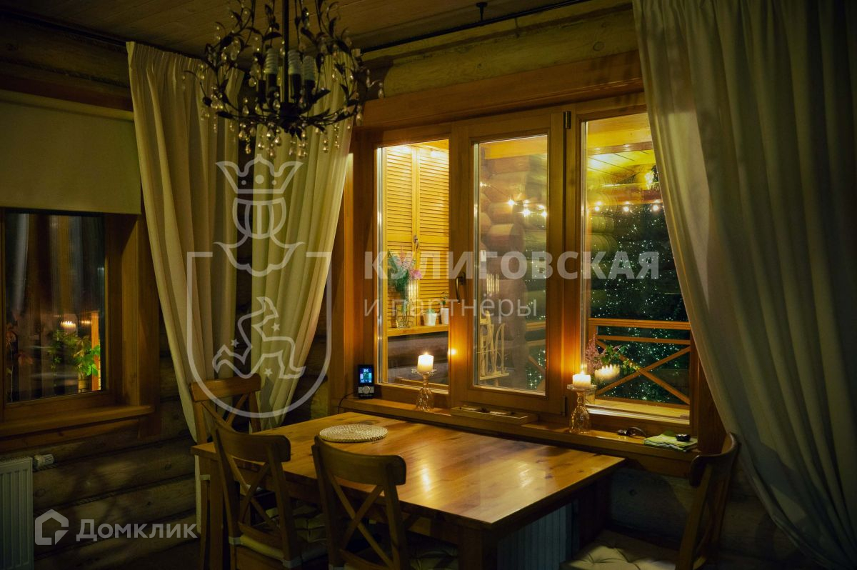 Коттедж построен из бревна ручной рубки — натурального экологичного материала. Внутренняя отделка выполнена по индивидуальному дизайн-проекту, с использованием самых качественных и экологичных материалов. Чувствуется, что всё сделано с огромной любовью и большим вниманием к каждой детали — пространство продумано до мелочей.
