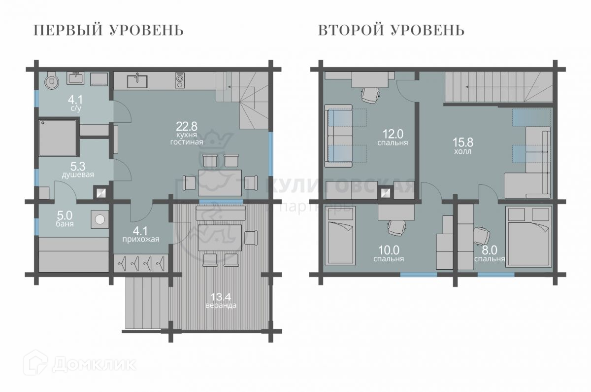 Дом наполнен невероятной энергетикой, теплом и легкостью — в нем по настоящему комфортно и уютно. На первом этаже располагаются уютная летняя терраса для семейных завтраков, зона кухни с итальянским гарнитуром, полностью укомплектованным бытовой техникой, санузел, душевая и парная с дровяной печью.