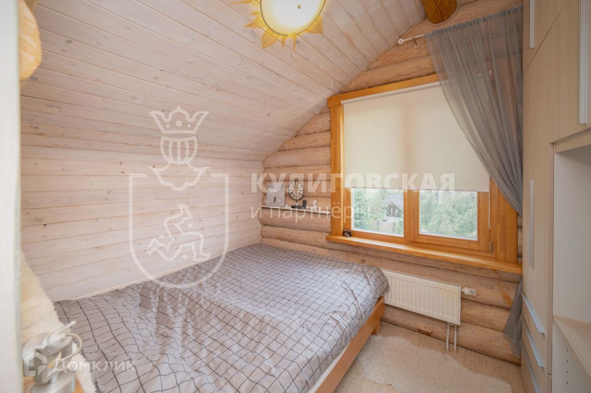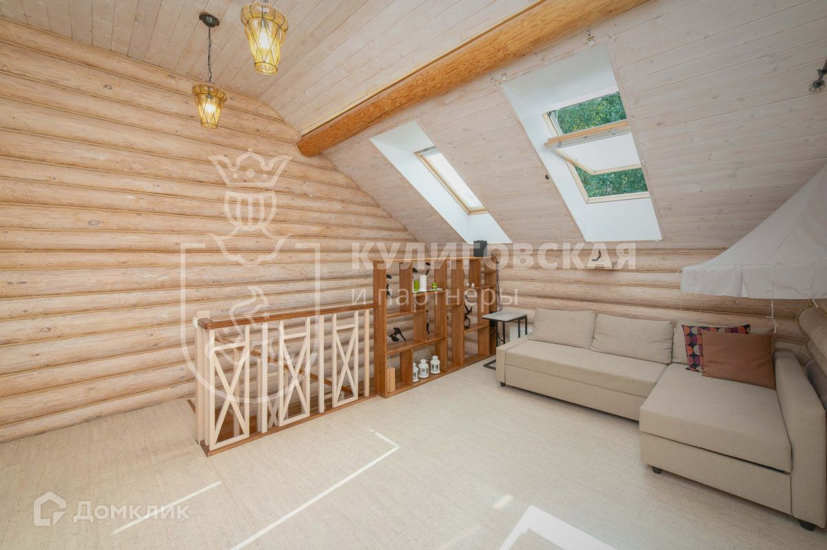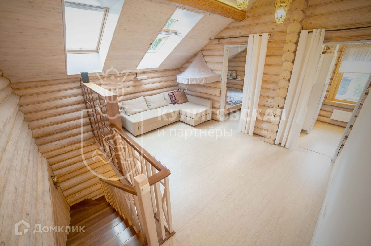 На второй этаж ведет деревянная лестница из натурального бука, выполненная на заказ. На втором этаже три спальни и зона для отдыха с диваном и проектором, для уютных семейных вечеров. Мансардные окна наполняют комнаты дневным светом, а ночью через них можно наблюдать за звездным небом. В доме много мест для хранения, в лестницу встроен стеллаж. Всё, включая мебель, технику и предметы интерьера, останется будущим владельцам.