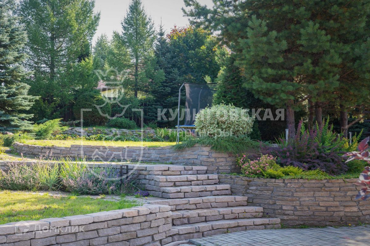 Ландшафт выполнен в концепции природного функционального зонирования. На участке растут невероятной красоты деревья (возраст некоторых достигает 23-х лет!), кустарники и