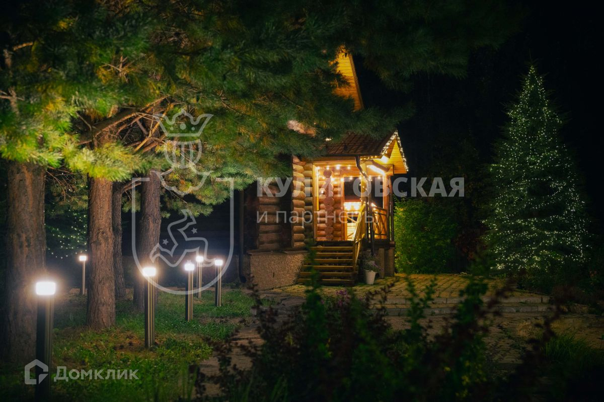 Вечером на участке просто сказочная атмосфера: зажигается красивое ландшафтное освещение, ели и веранда украшены гирляндами. Всё это создает непередаваемые ощущения!