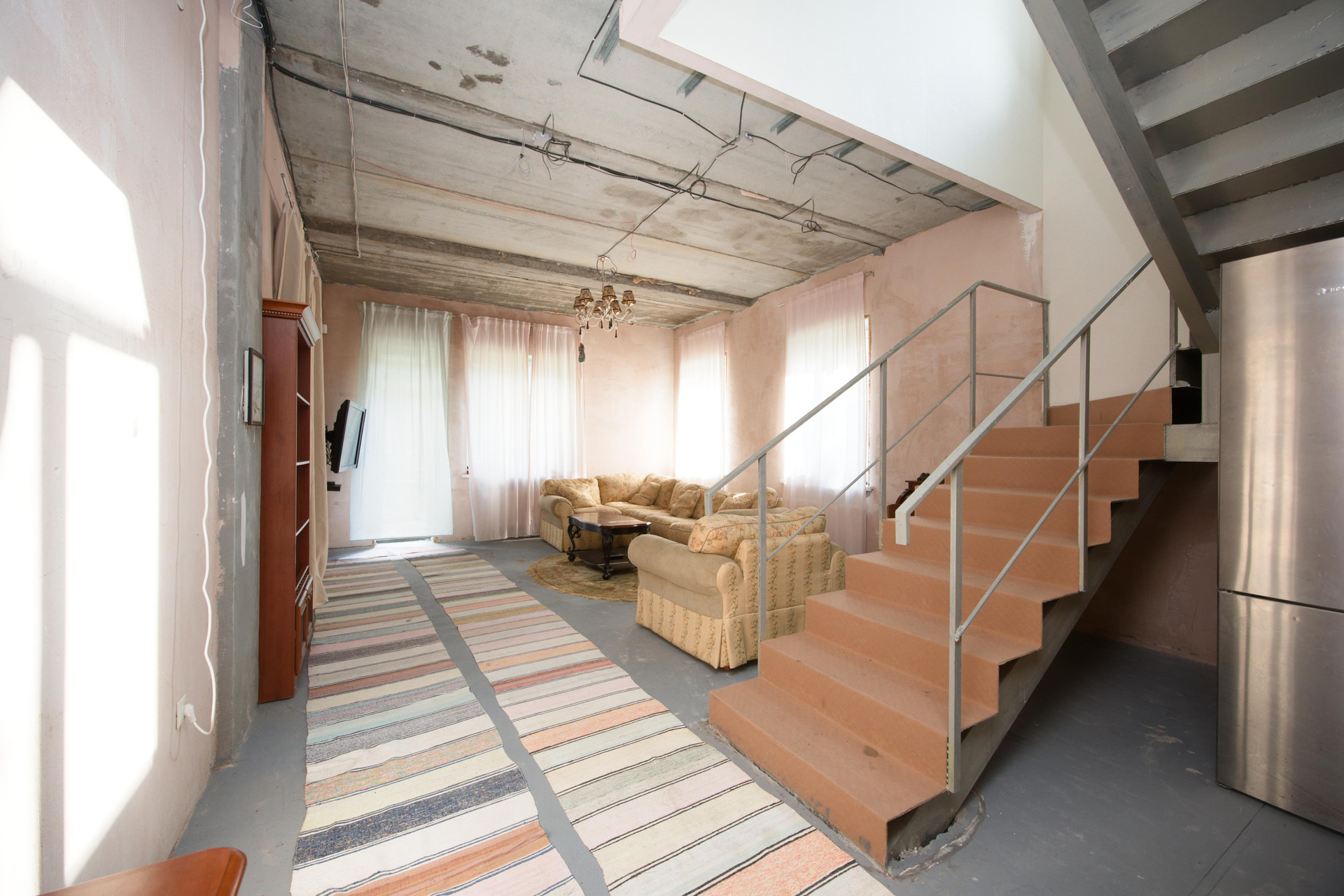 Планировка 1 этажа: просторный холл, гардеробная, кухня, гостиная с выходом на участок, 1 спальня, просторный санузел, котельная и бытовые помещения. Отделка «подготовка под чистовую», что позволит новым хозяевам воплотить в жизнь свои мечты и свои интерьерные решения.