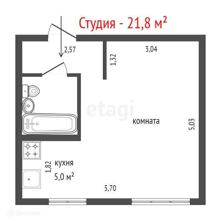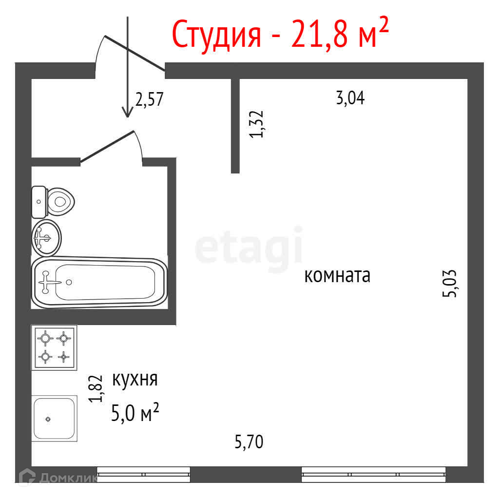 Общая площадь 21.8 м2