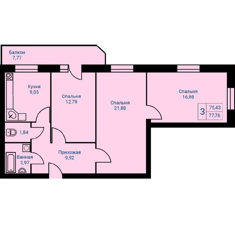 Общая площадь 77.76 м2