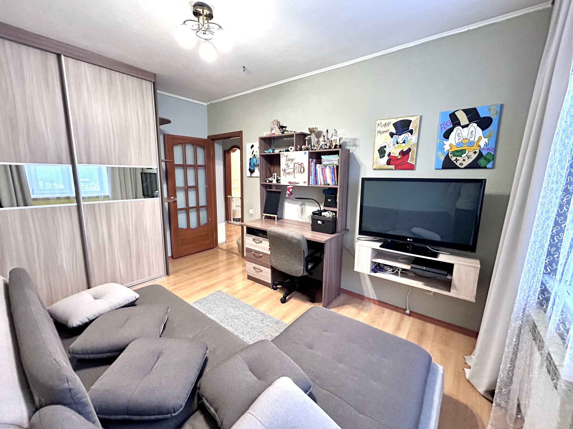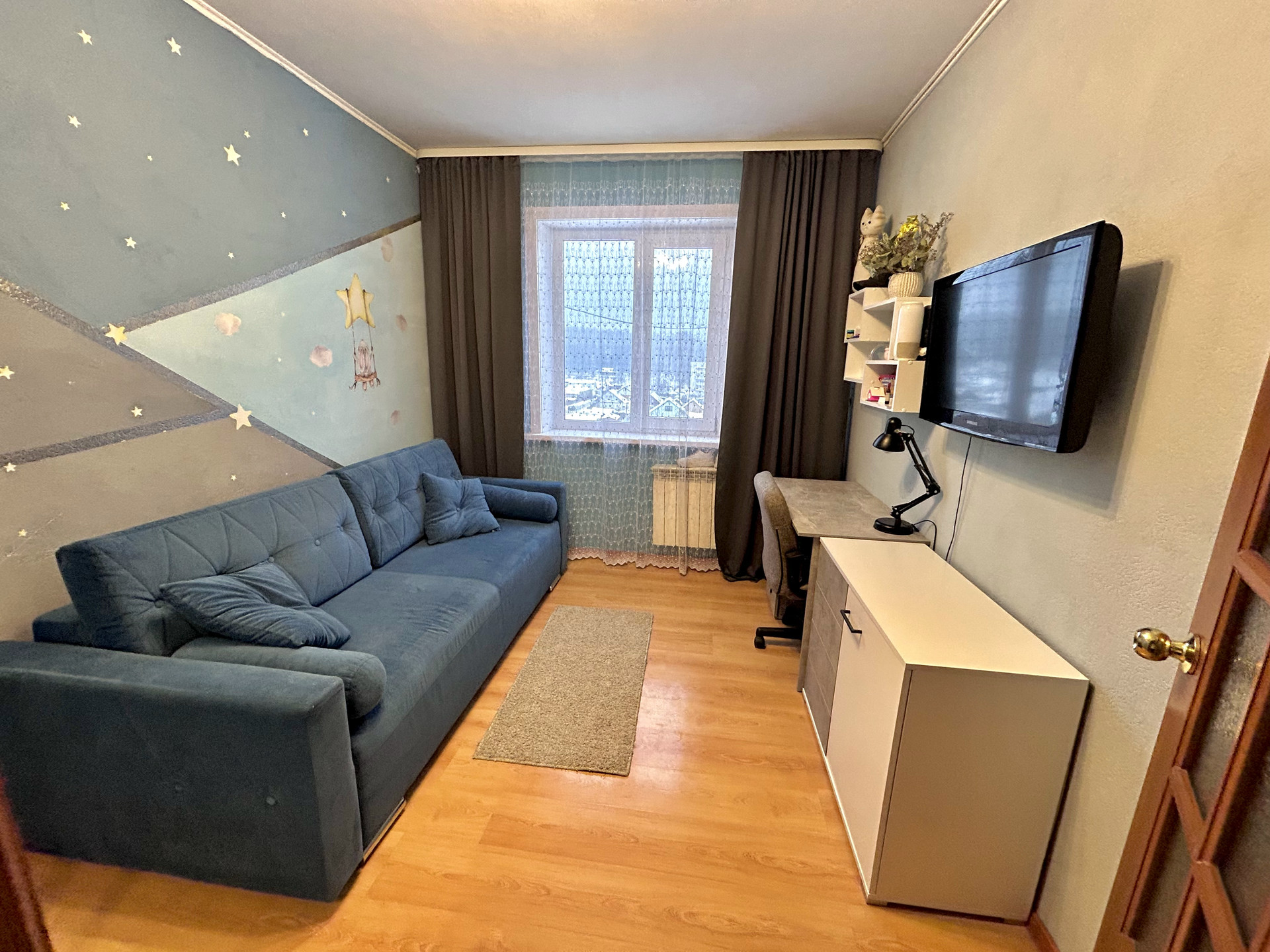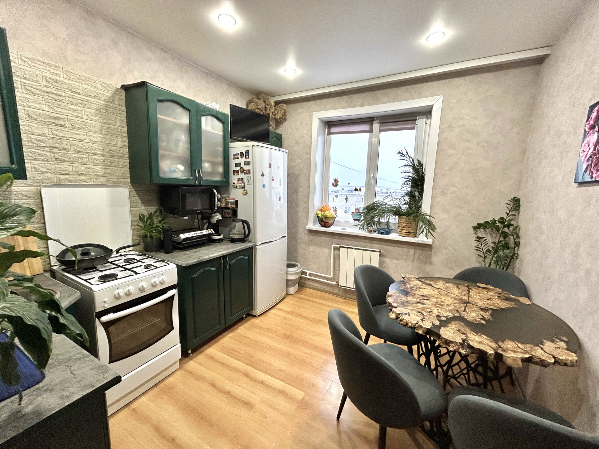 В продаже 4х комнатная квартира в востребованной локации п. Динаса, с идеальной планировкой для большой семьи. Все комнаты изолированы, 3 спальни и гостиная с балконом. Новым собственникам остается мебель для хранения одежды и кухонный гарнитур.