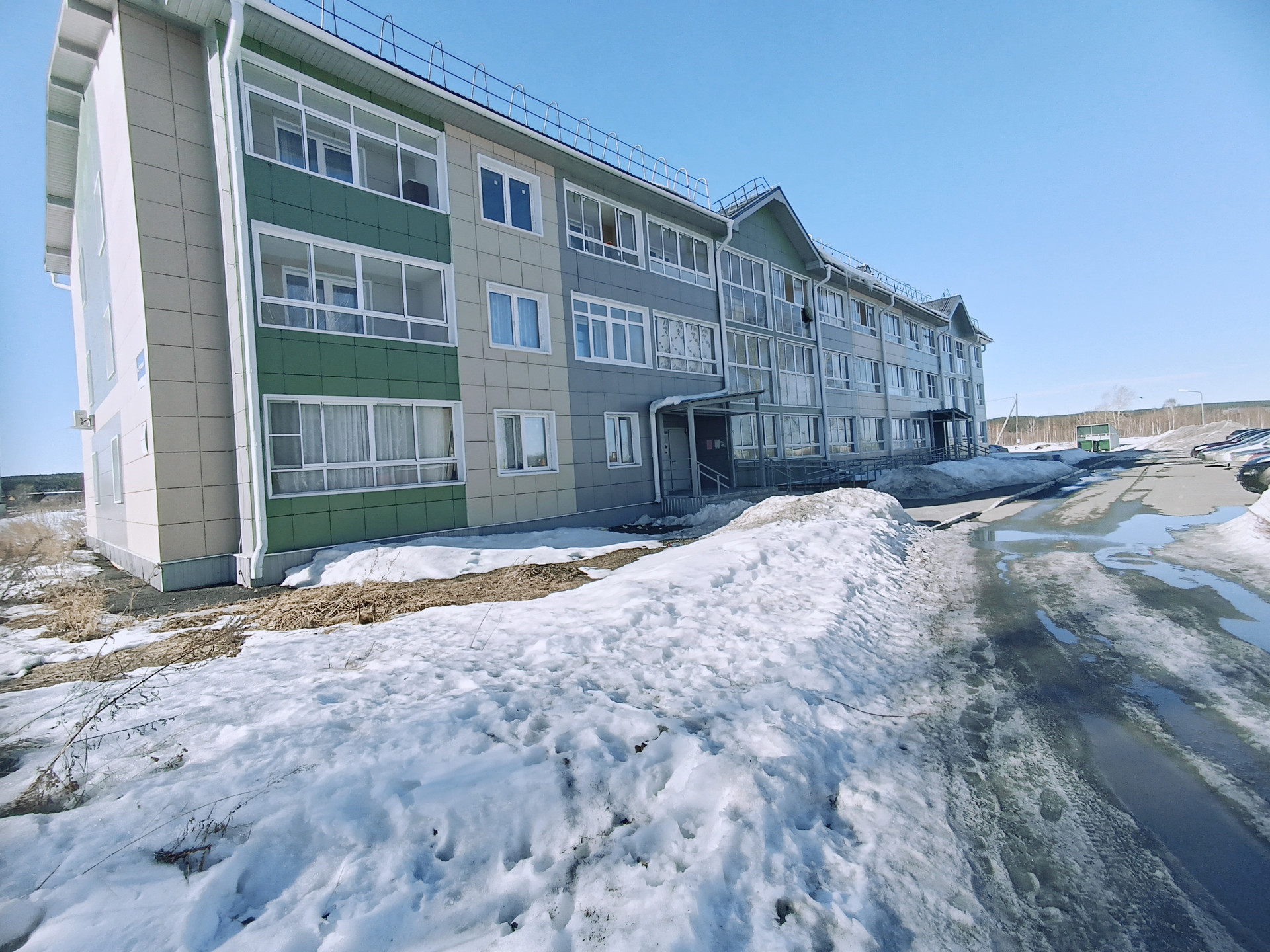 Во дворе большая детская и спортивная площадка.