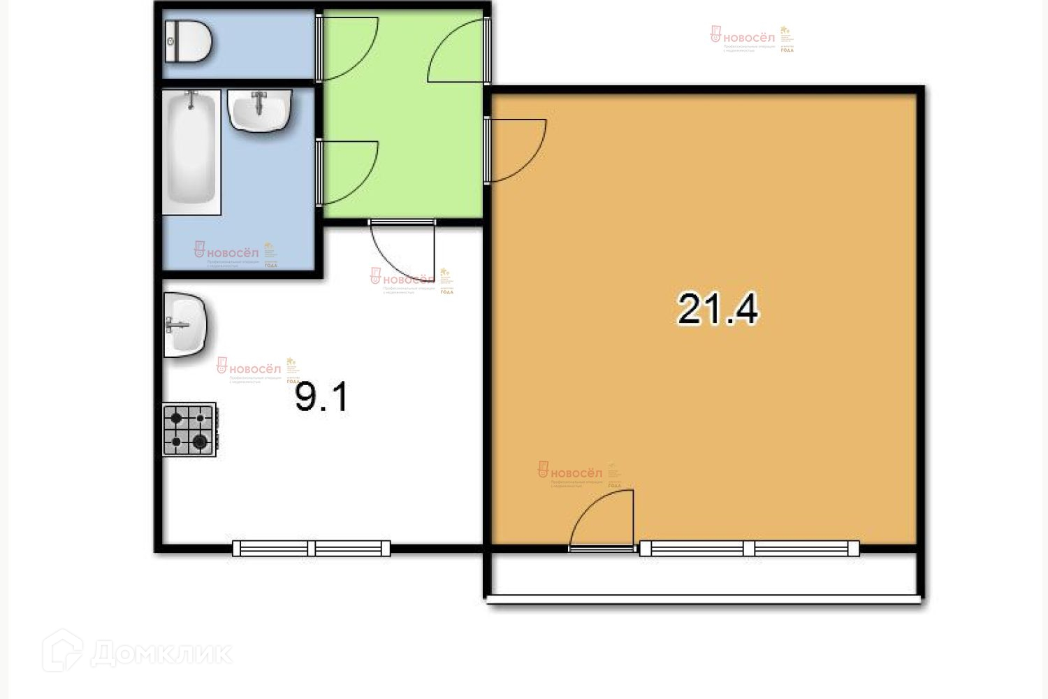 Общая площадь 34 м2