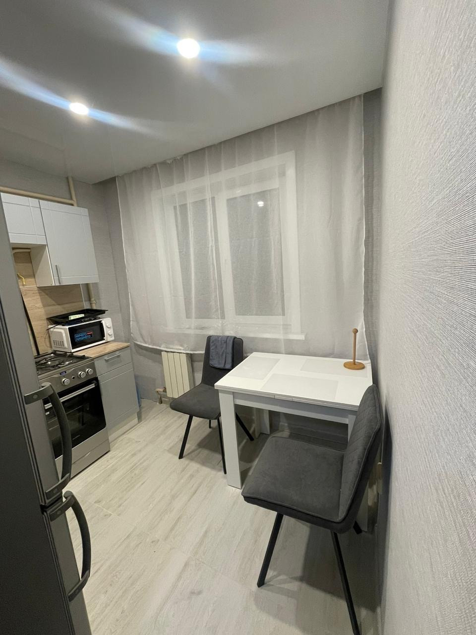 Продается однокомнатная квартира с новым ремонтов делали год назад. На кухне и ванной плитка в комнате ламинат , на кухне теплые полы. В коридоре сделан встроенный шкаф купе. Рядом с домом большая парковка, до тц Марс 5 минут , рядом 2 садика и школа. Парк и набережная в 10 минутах ходьбы. Соседи все добрые и тихие. Остается на кухне встроенный гарнитур и новая плита. Балкон застеклен. Вся проводка и автоматы  новые.