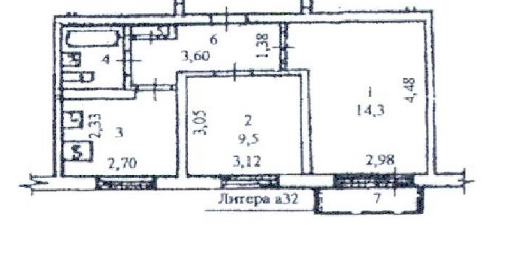 Общая площадь 38.8 м2
