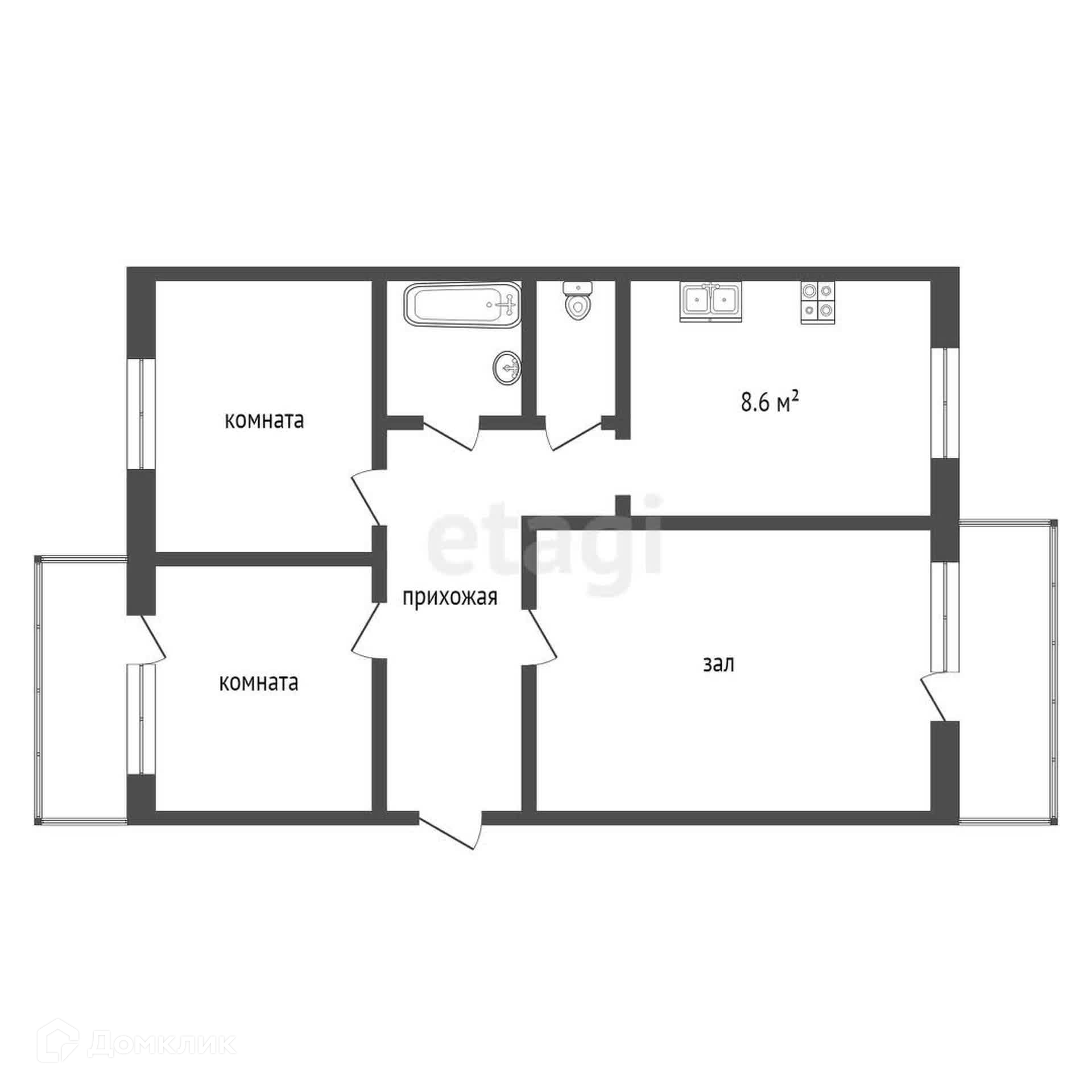 Большая и светлая.В квартирe 2 зaстеклённых бaлкoнa.