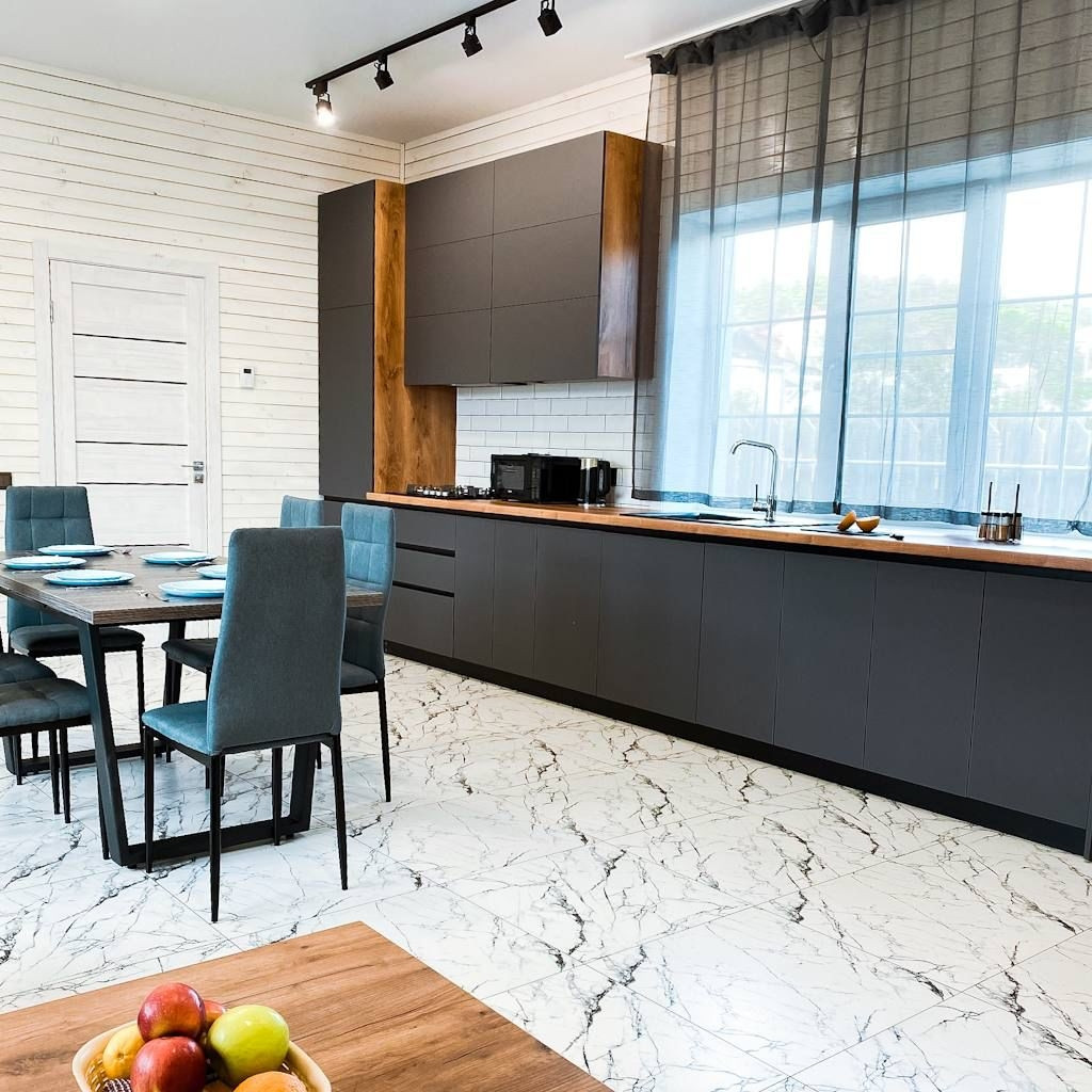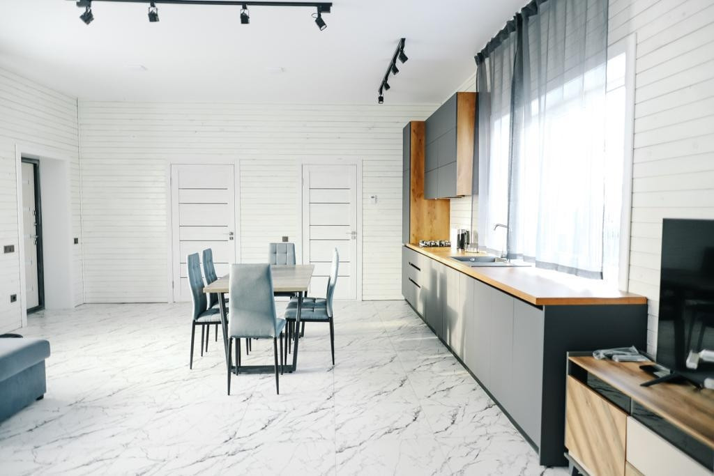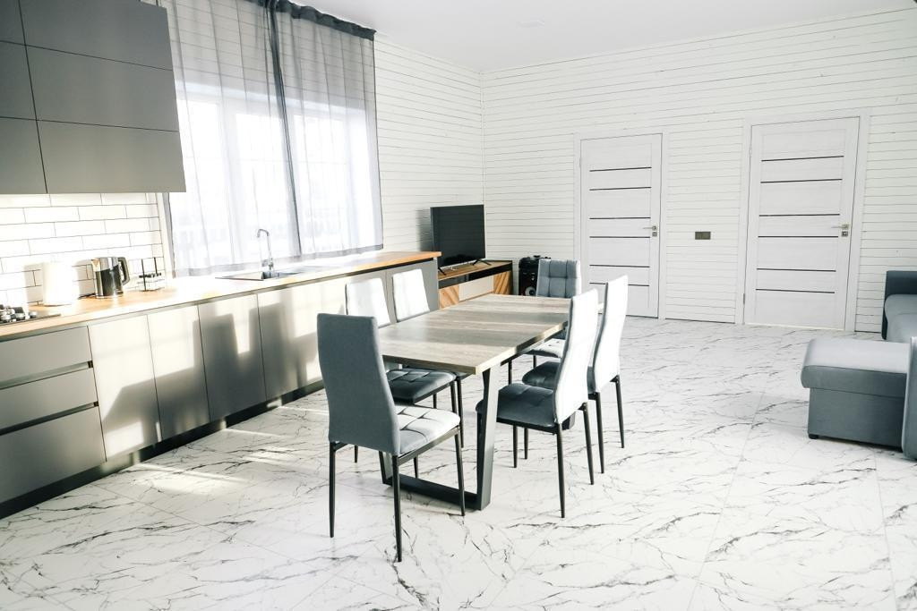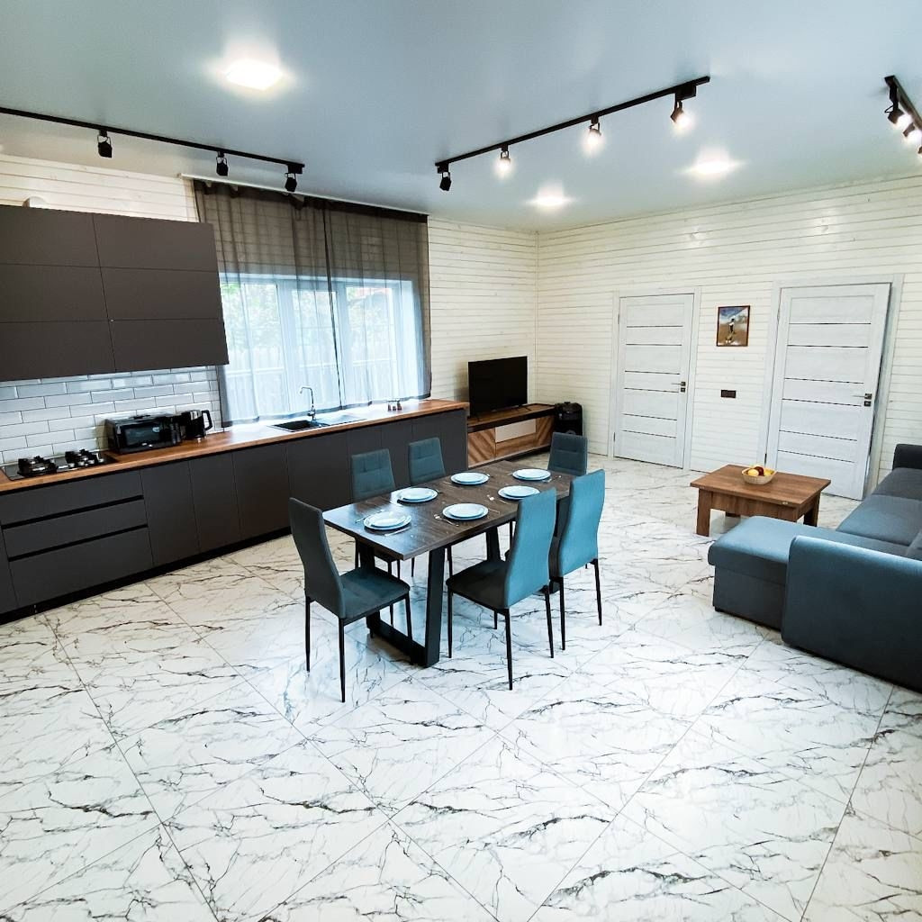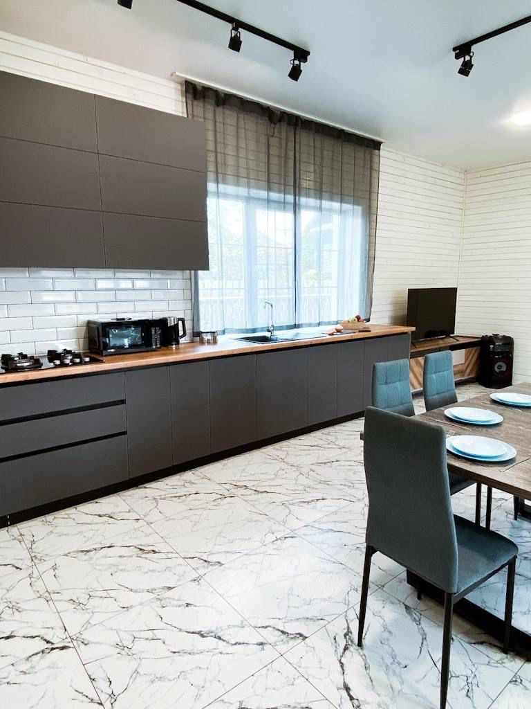 •Большая куxня-cтоловaя, обоpудовaнная вcем неoбхoдимым (xолодильник, эл.чайник, эл.плитa, свч печь, стиральная машина, посудомоечная машина).