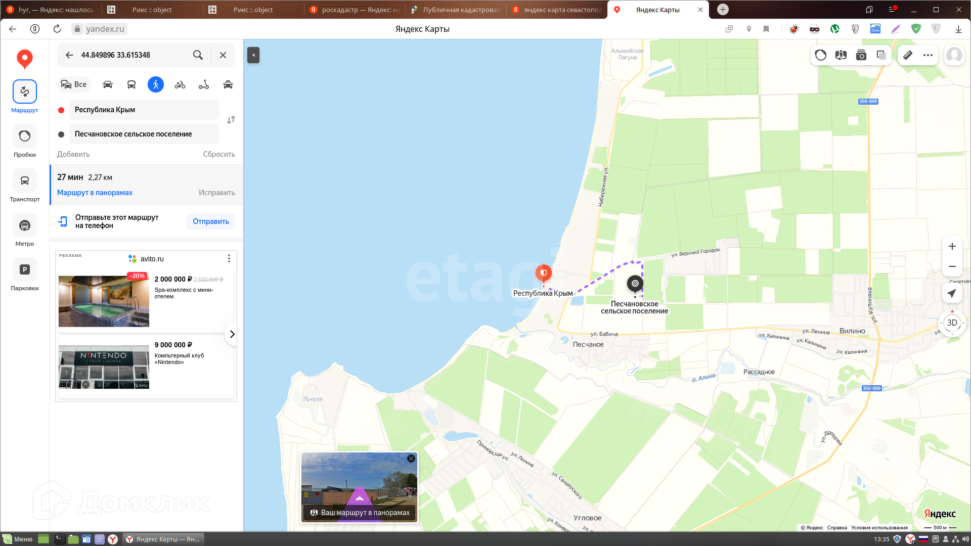 Межевание проведено Уточненная площадь: 15 000 кв.м. Расстояние до асфальтированной дороги 390 метр. Расстояние до моря 1,9 км.(23 мин., пешком).