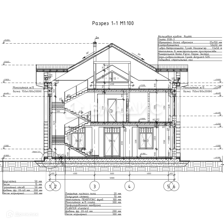 Фундамент монолитная плита 300 мм, стены из газобетона толщиной 400 мм с наружным утеплением, оштукатурены и окрашены, монолитные межэтажные перекрытие 200 мм, окна немецкие SCHUCO, фасад штукатурка, выполнена мягкая кровля - CATEPAL.