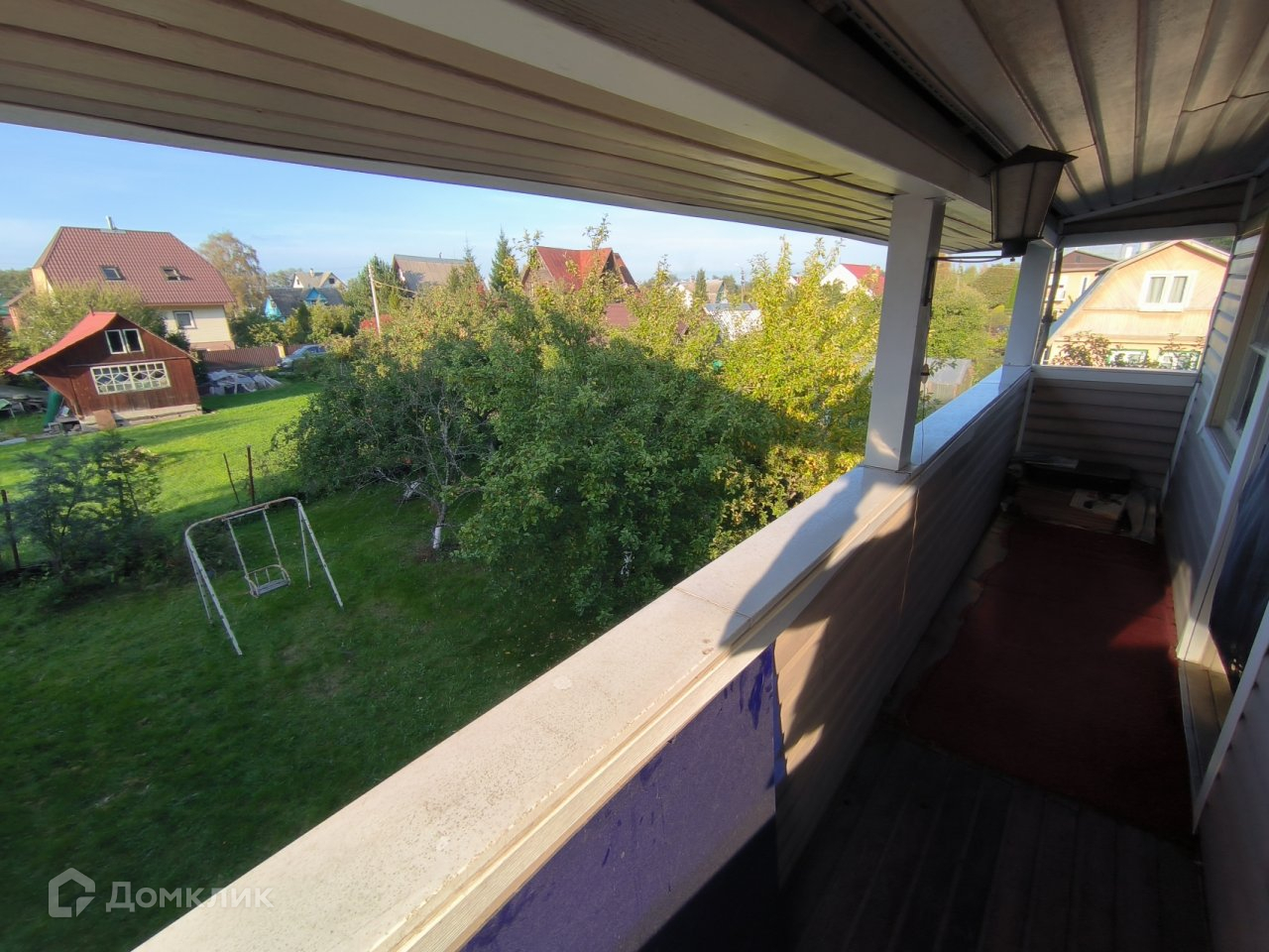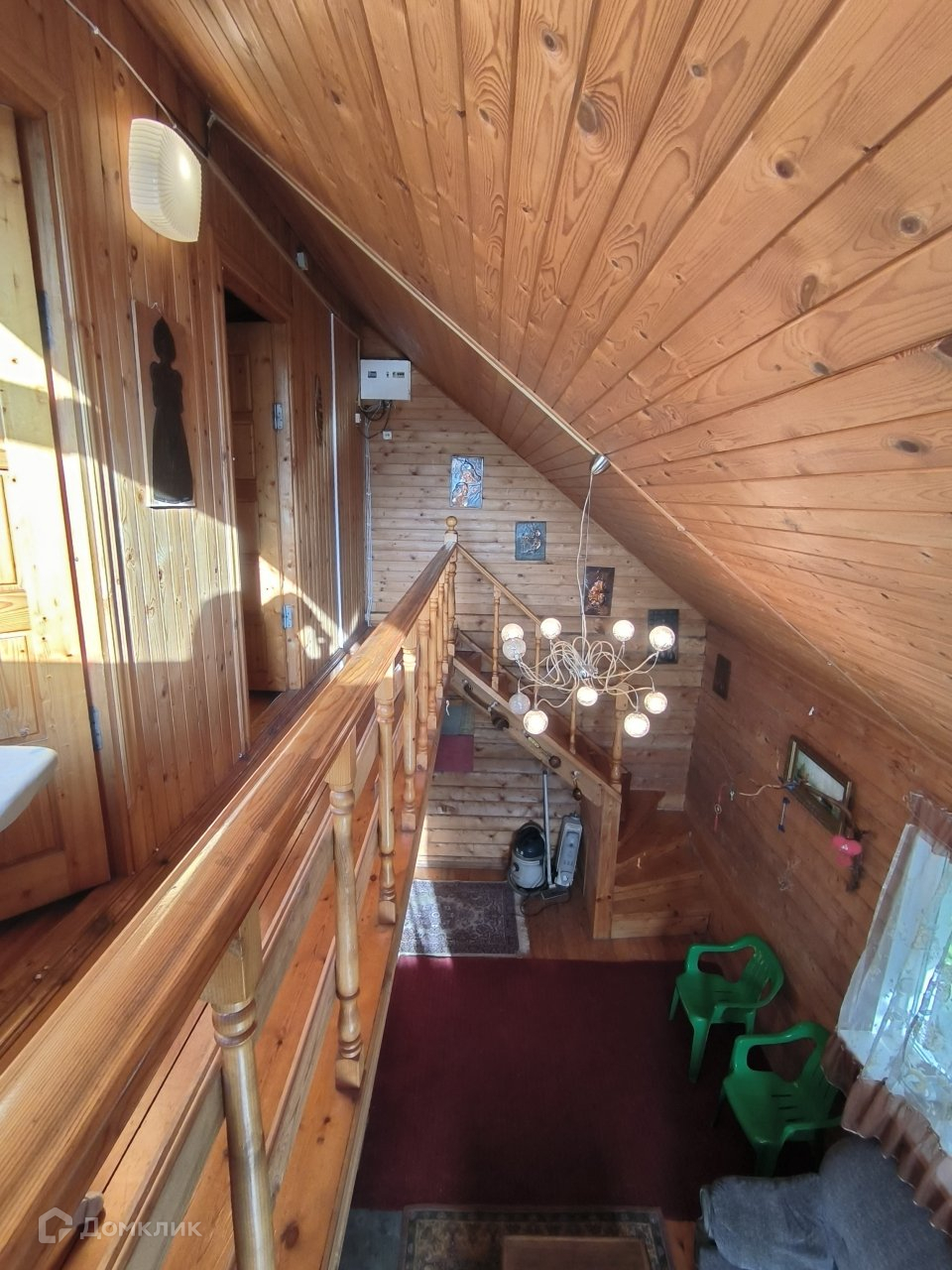 Второй этаж две спальни с выходом на большой балкон, вид на участок сверху. На первом зал, небольшая кухня и выход в баню. Есть просторная веранда.