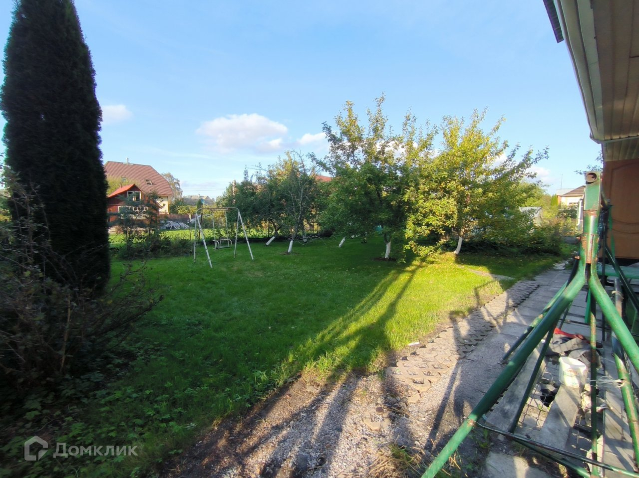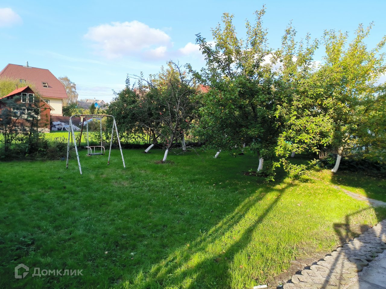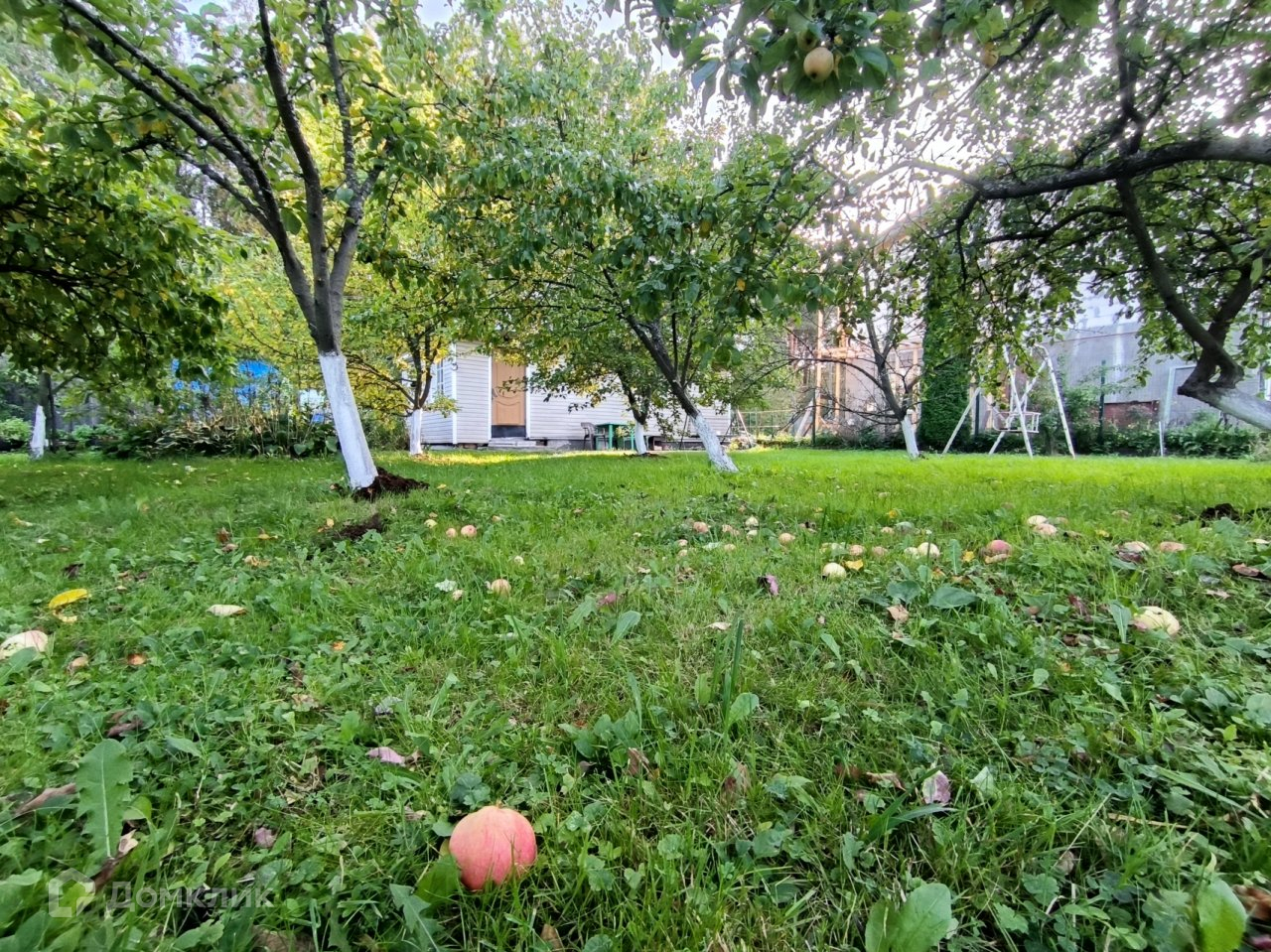 Плодовые деревья, небольшая теплица и хоз блок.