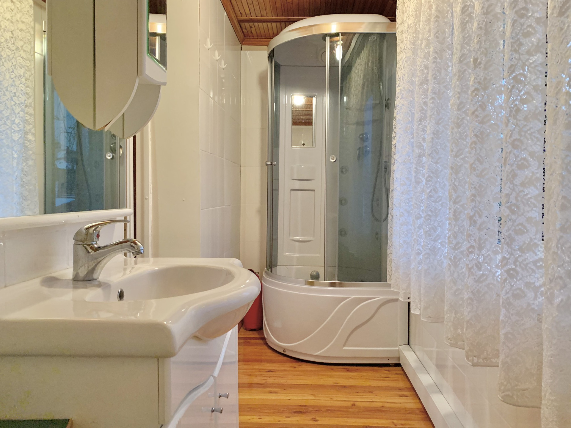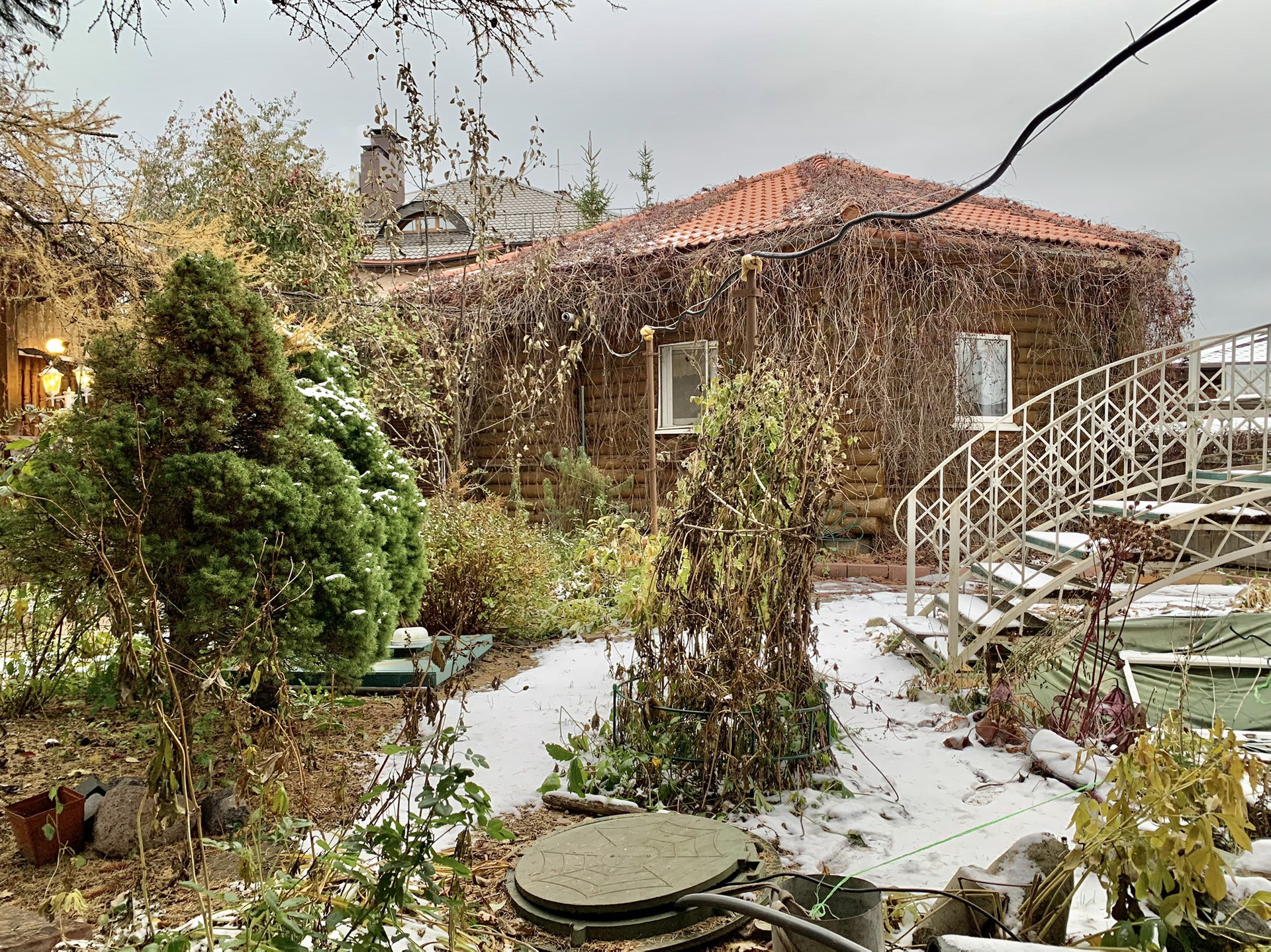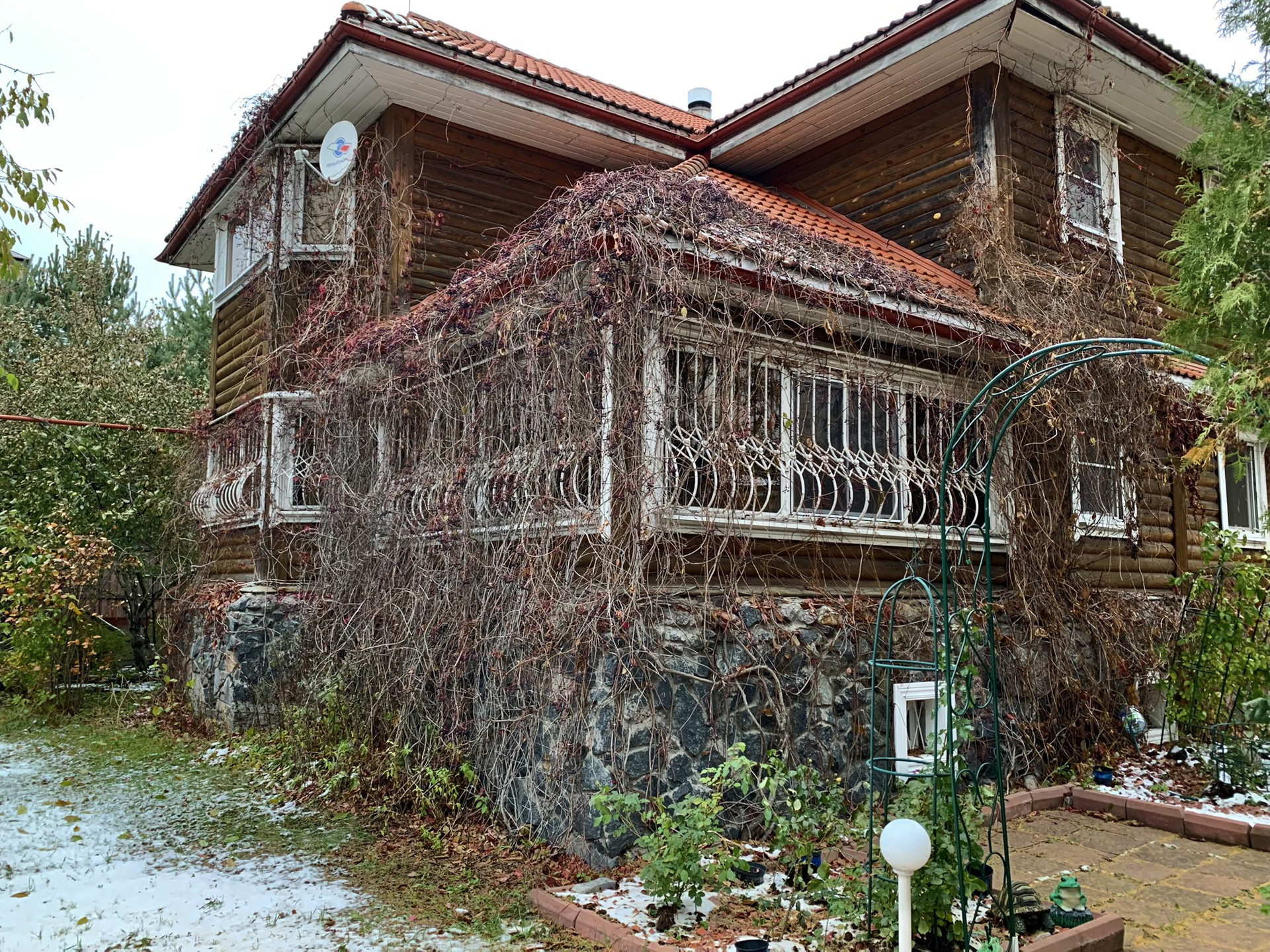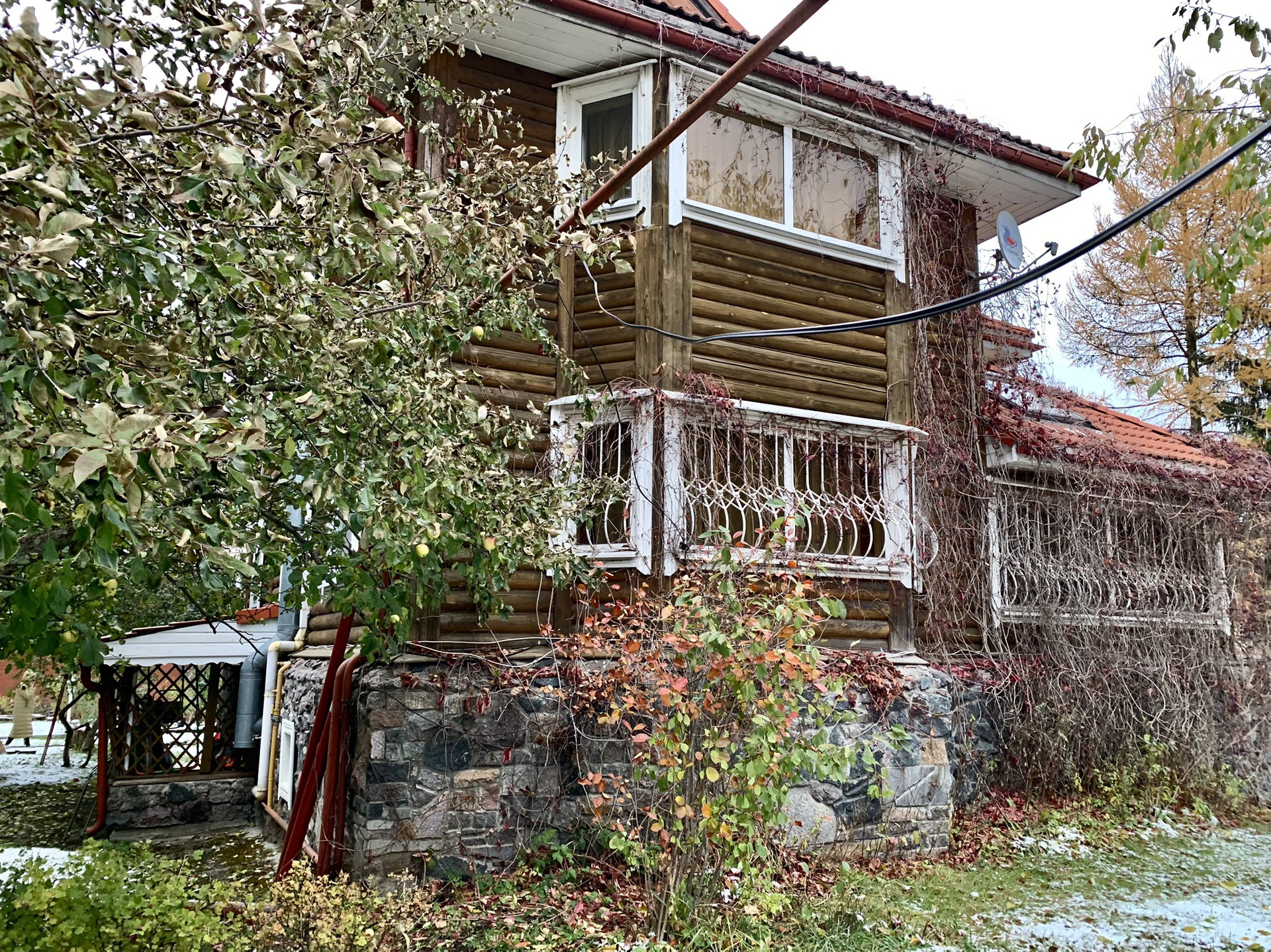 На участке расположены коттедж 200 метров и гостевой дом 64 метра, построенные из колиб