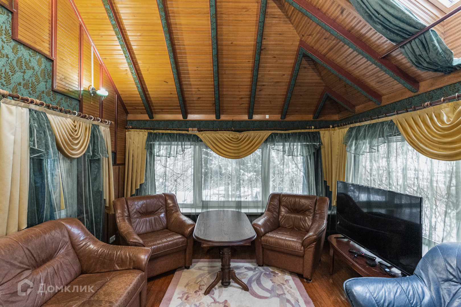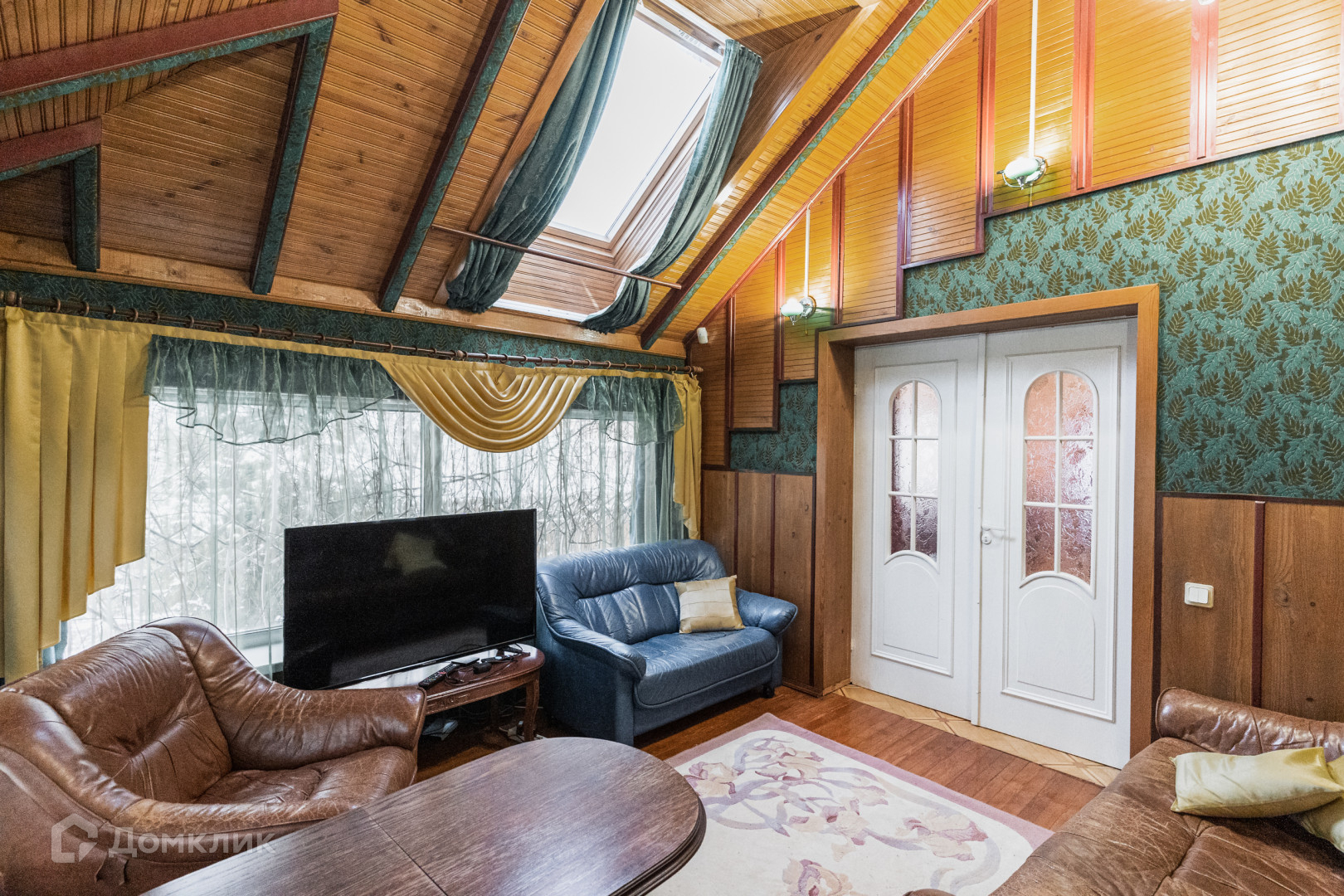 Внутренняя отделка дома произведена исключительно из природных материалов. На стенах итальянские гобелены, панели из пробкового дерева, бамбуковые панели, полы в комнатах из паркетной доски лиственницы. Вся сантехника пр-ва Швеции.