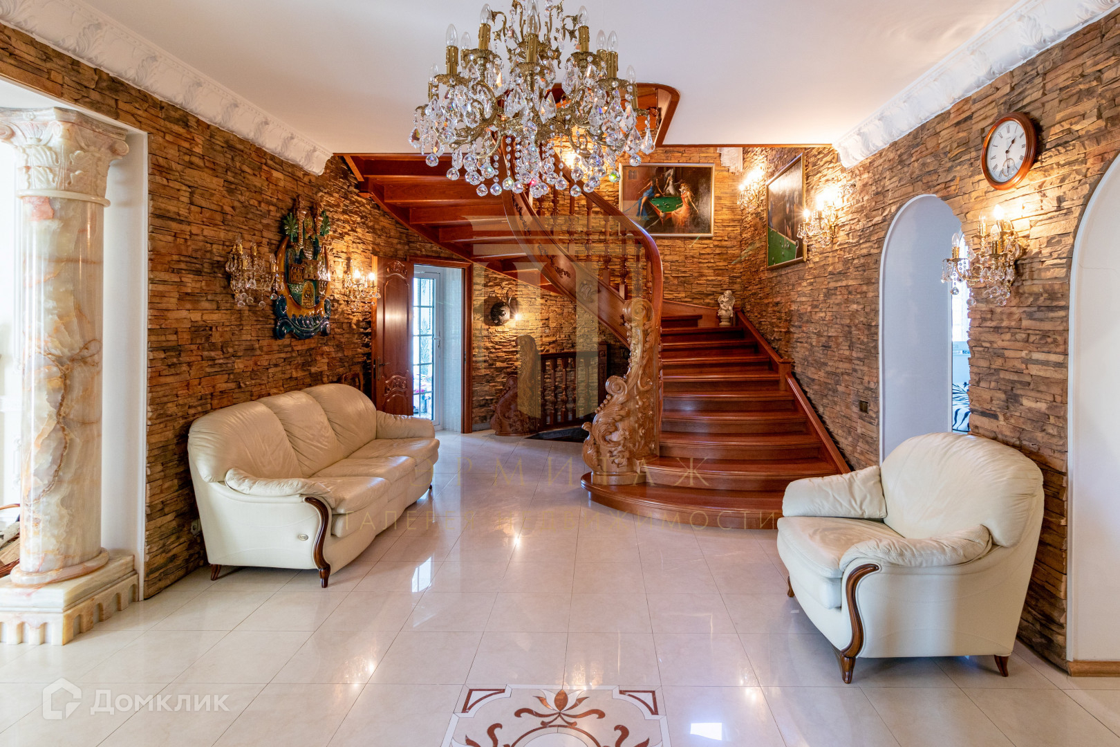 Холл - визитная карточка дома,подчеркивает статусность помещения и безупречный дизайн, для декорирования стен использован настенный камень;