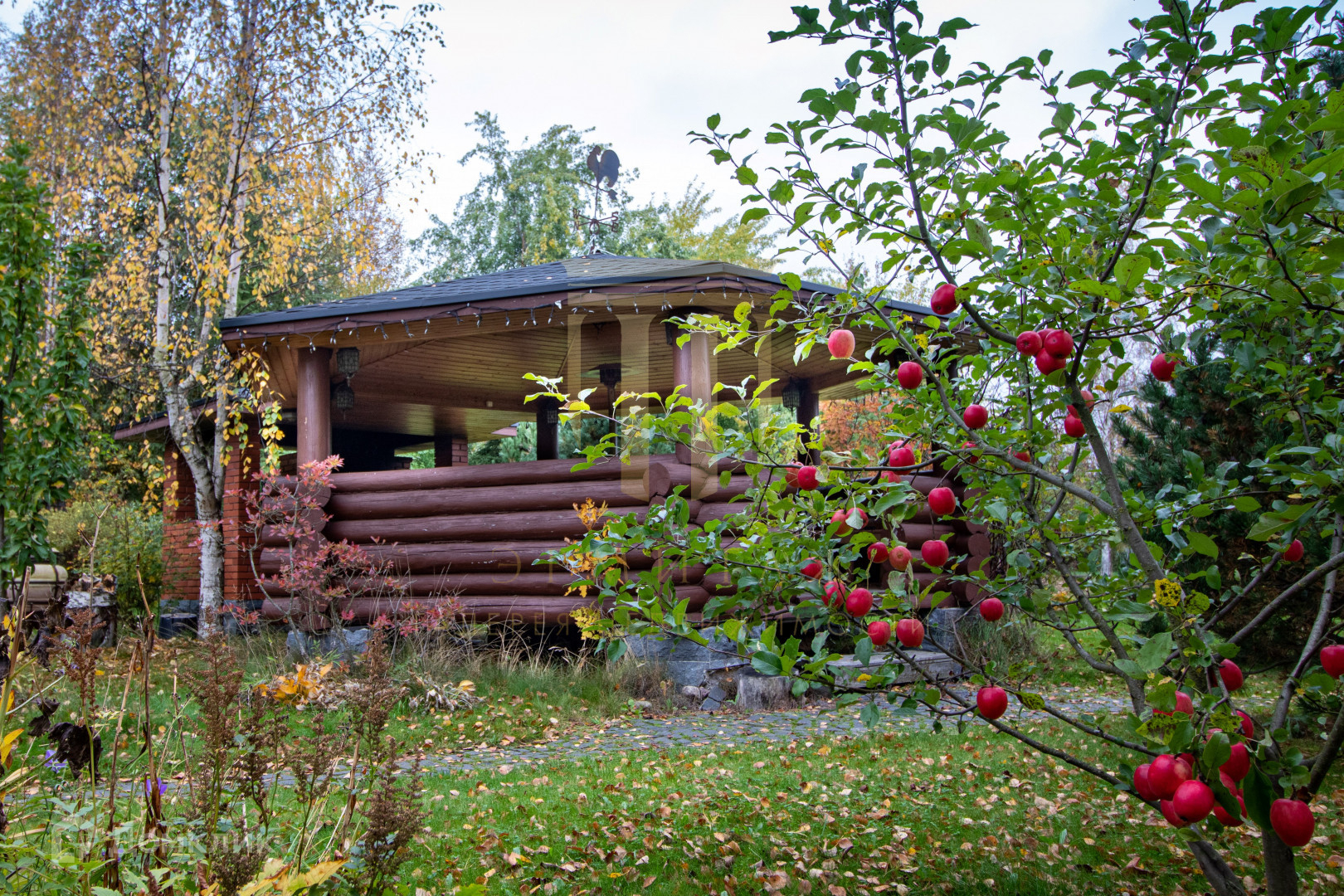 На участке есть двухэтажная баня с оборудованной кухней и двумя спальнями, двухуровневый гараж, беседка, игровой домик и пруд.