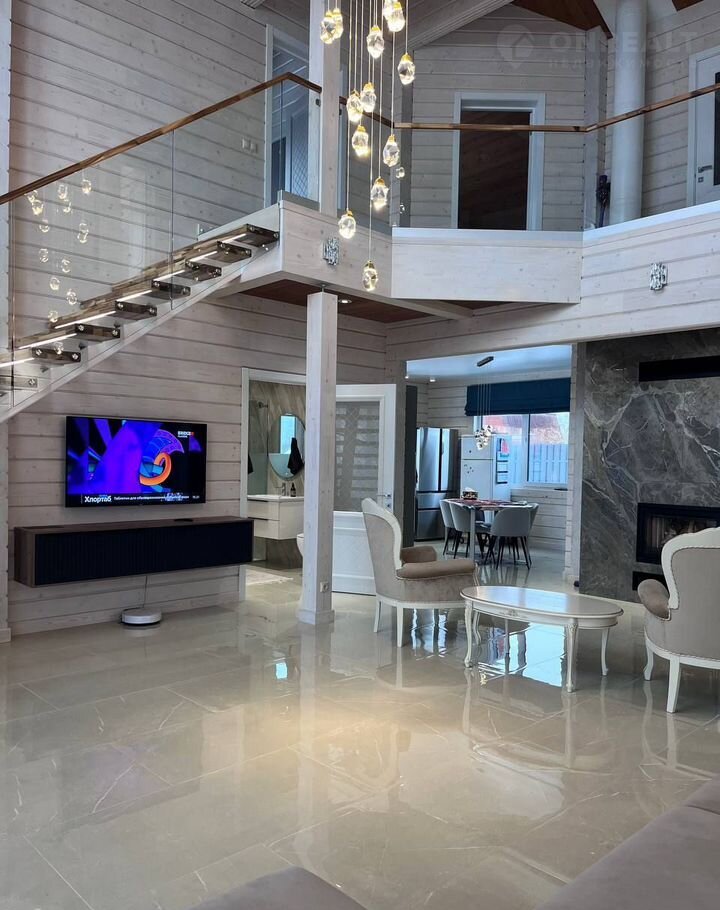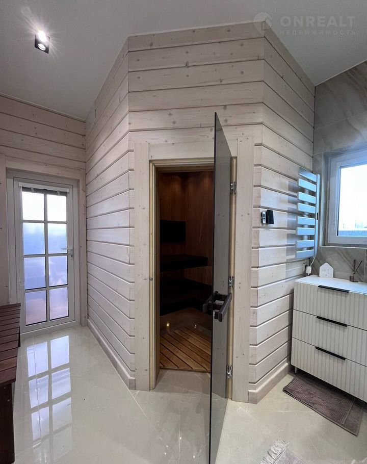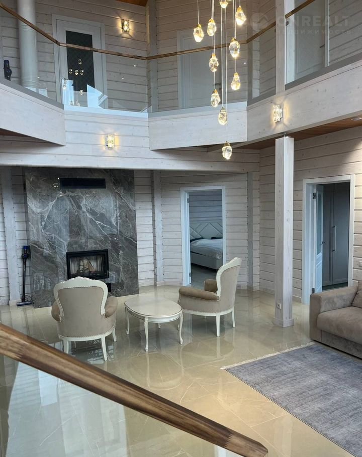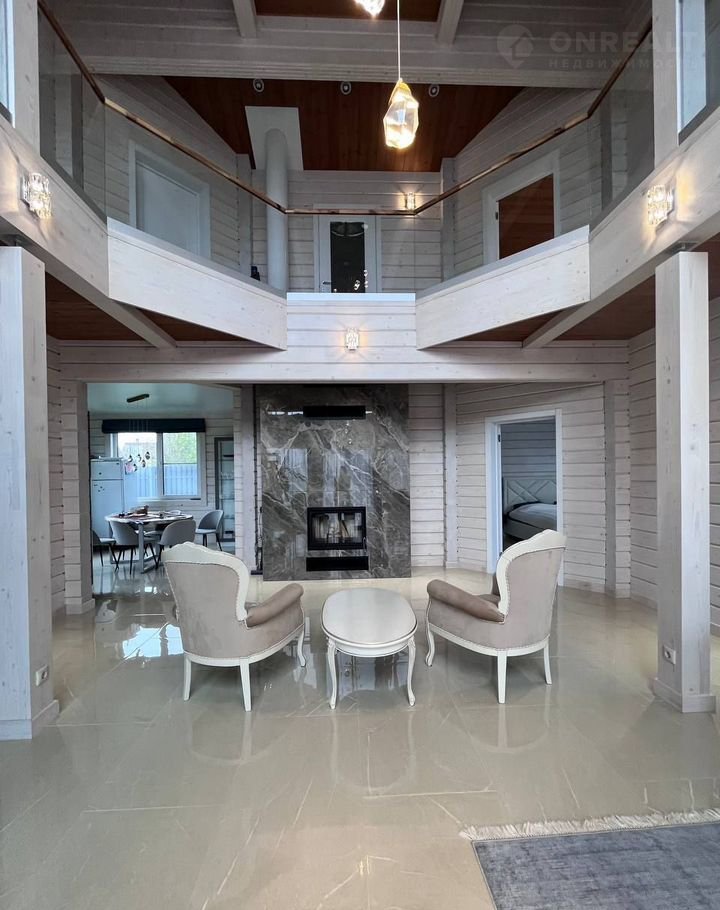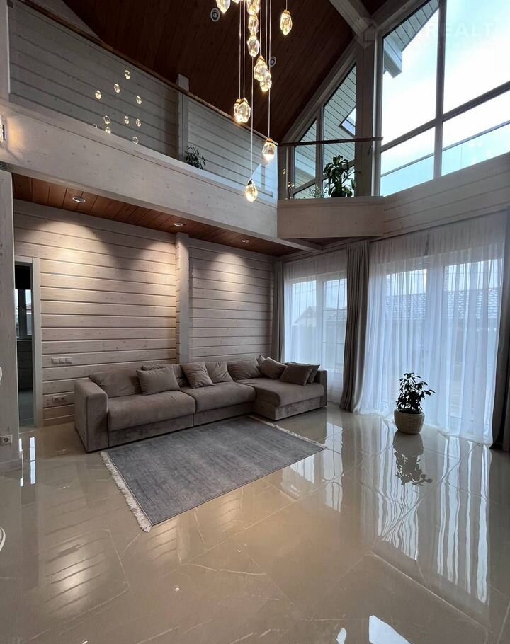 Планировка: просторная прихожая; гостиная со вторым светом, балконом, каминной зоной; кухня; бойлерная; сауна/русская баня отделанная ольхой, термоберезой; 5 спален; 2 саузла; терраса (выход из сауны).