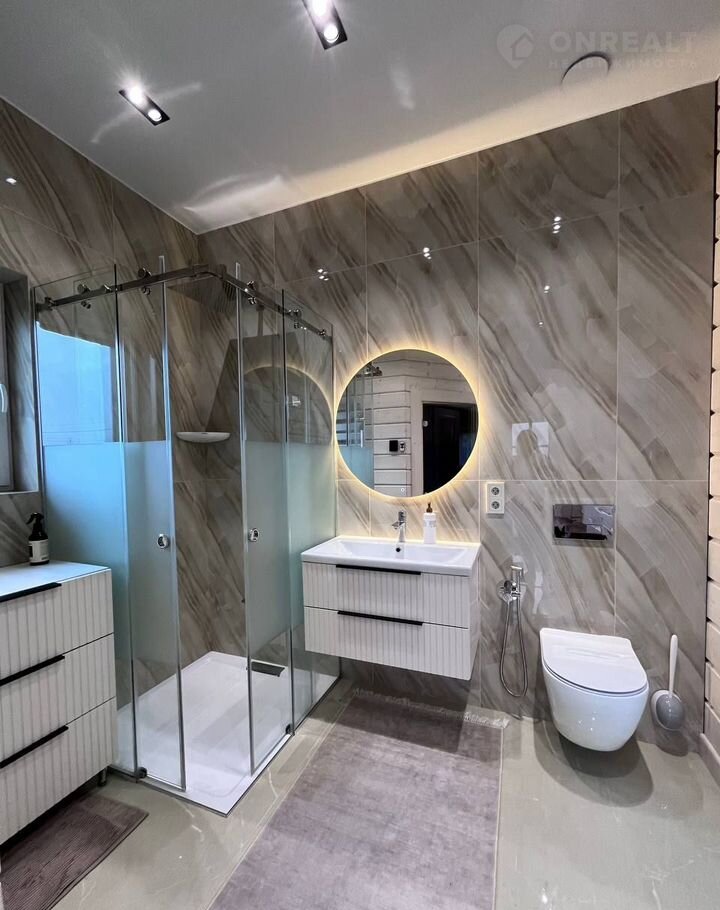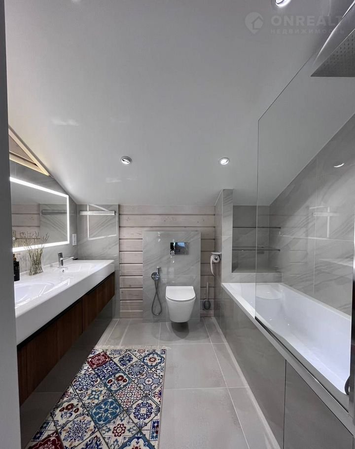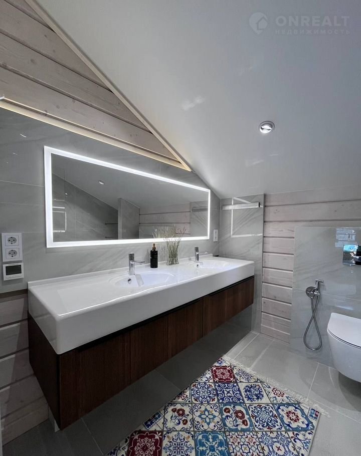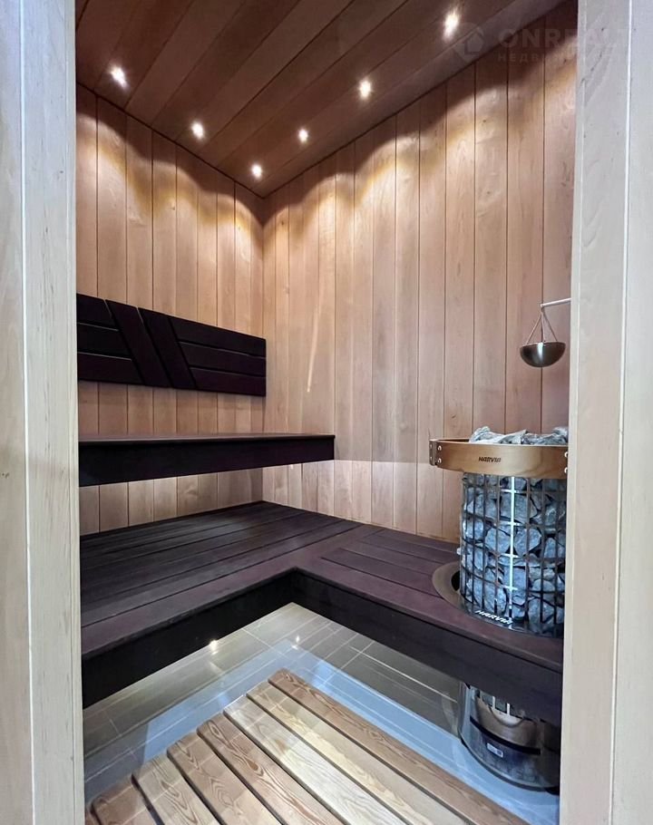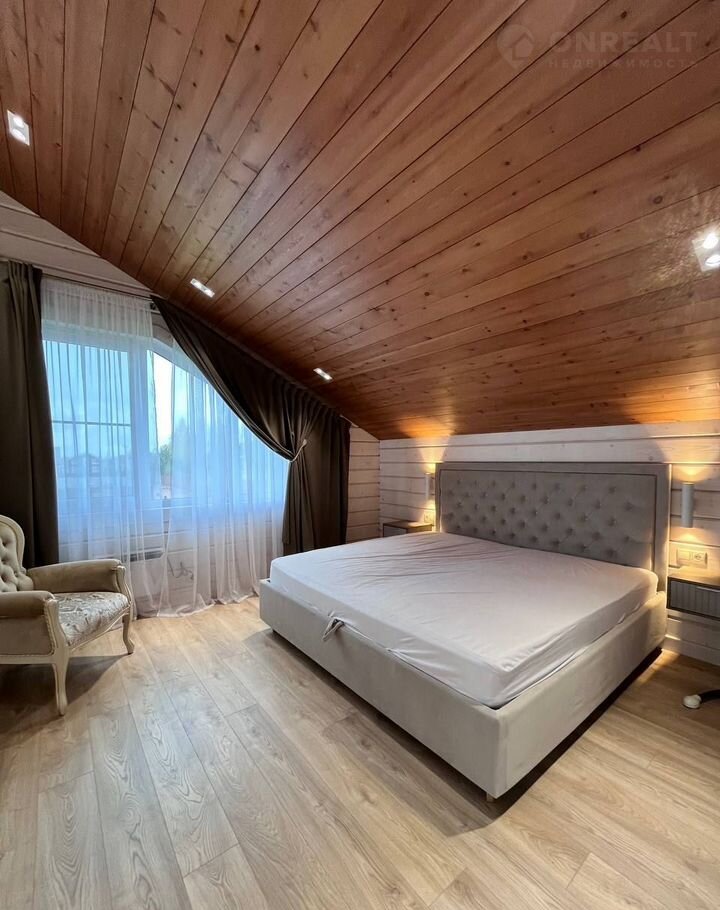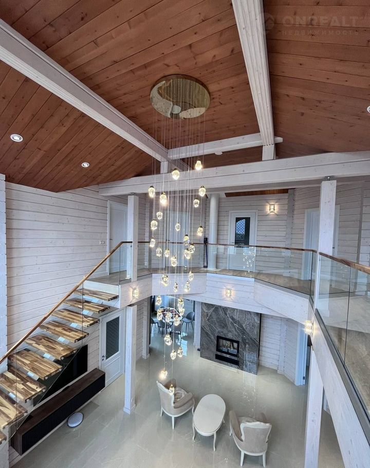 Планировка: просторная прихожая; гостиная со вторым светом, балконом, каминной зоной; кухня; бойлерная; сауна/русская баня отделанная ольхой, термоберезой; 5 спален; 2 саузла; терраса (выход из сауны).