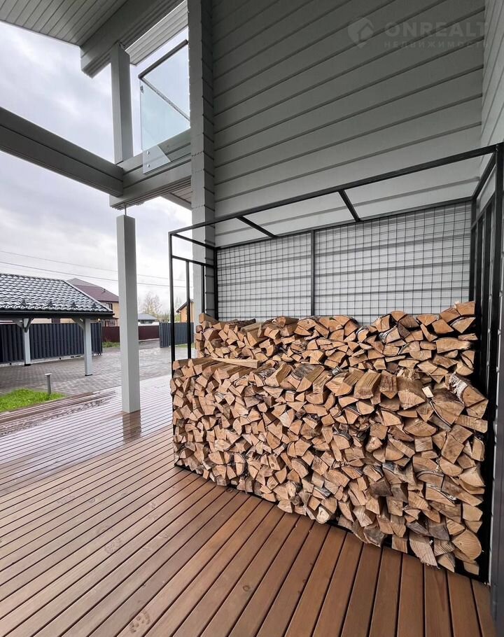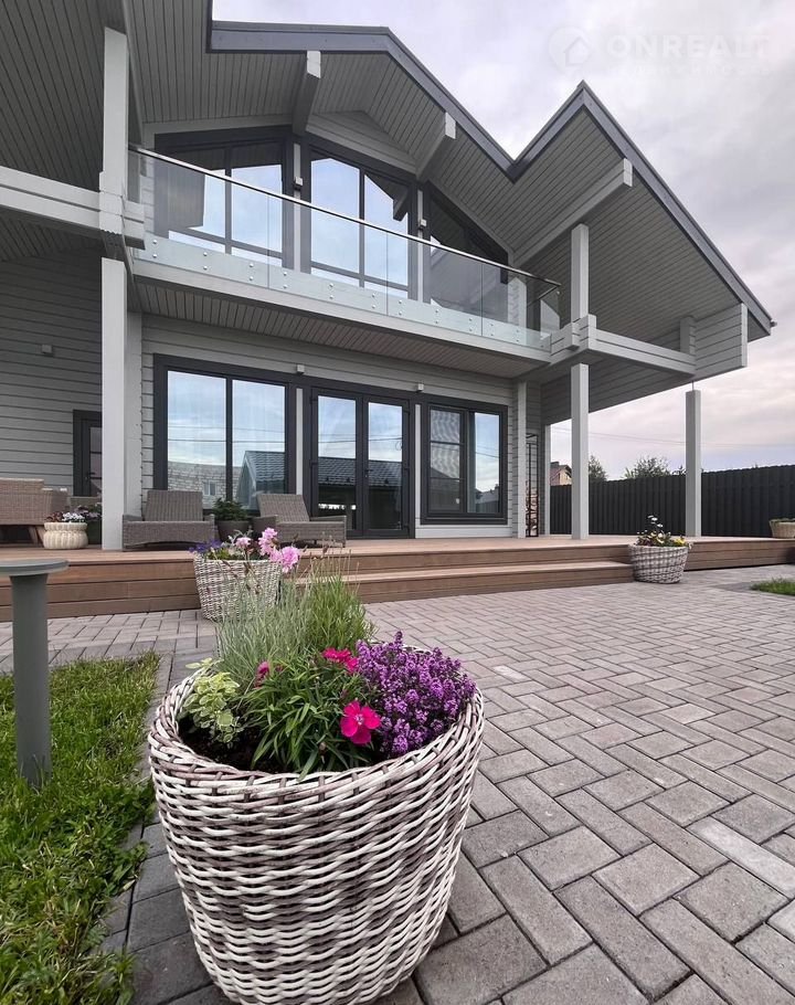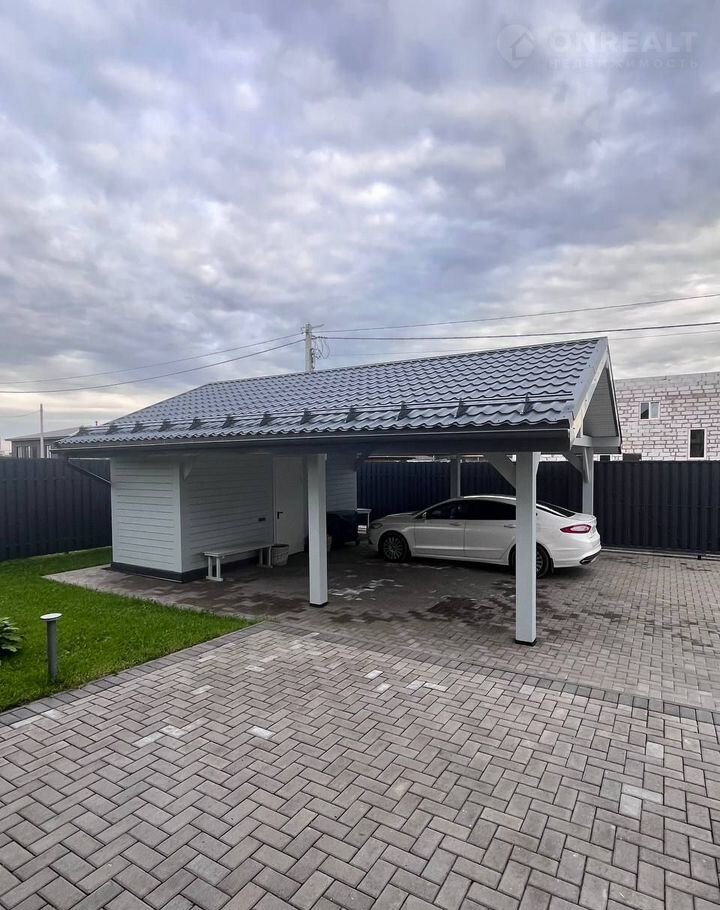 Выполнен в едином стиле с конструктивом дома, правильно расположен на участке.