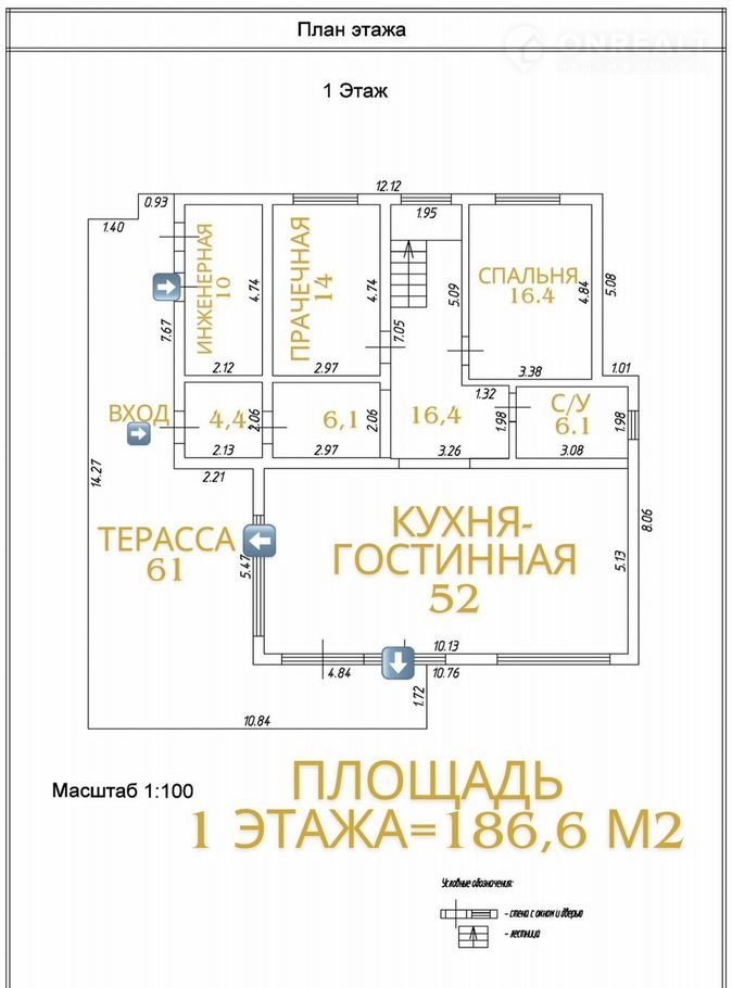 Стены: газобетон, крыша - монолитное перекрытие толщиной 200 мм.
