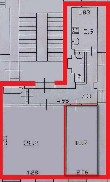 Комната 10,7 кв.м. находится на 2-ом этаже кирпичного дома 1917 г. Потолки 3,65 м., кухня 5,9 кв.м., с/у раздельный, прихожая 7,3 кв.м. В квартире и комнате требуется ремонт. В подъезде имеется чердачное помещение.