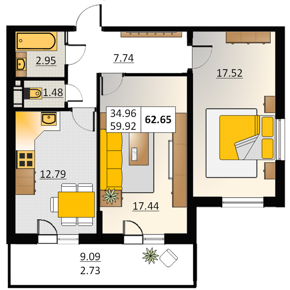 Общая площадь 62 м2