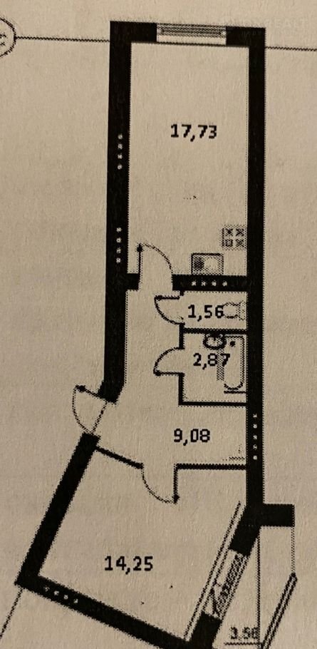 Жилая площадь 14.3 м2