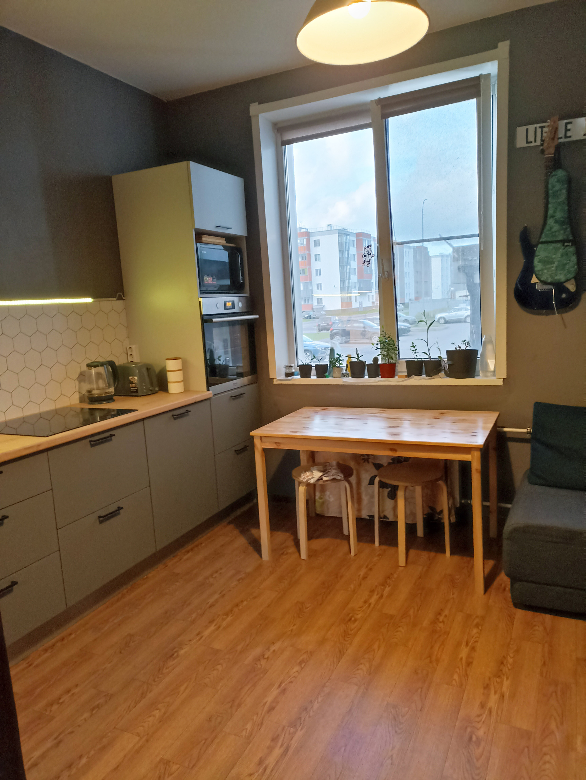 Из кухни просматривается вход в подъезд и парковка со стороны улицы.