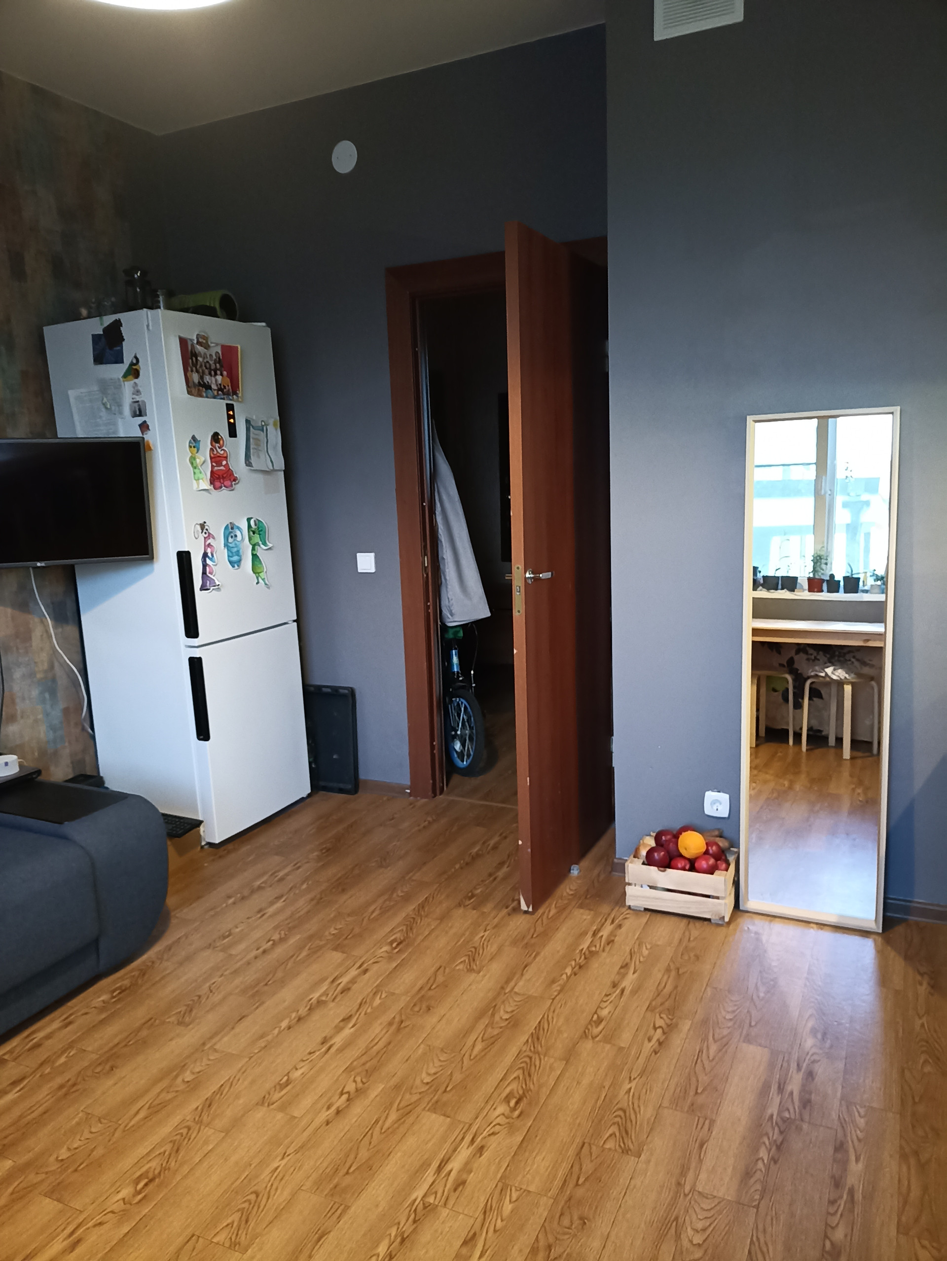Комнаты расположены по разные стороны от коридора, квартира хорошо проветривается. Отопление регулируется.