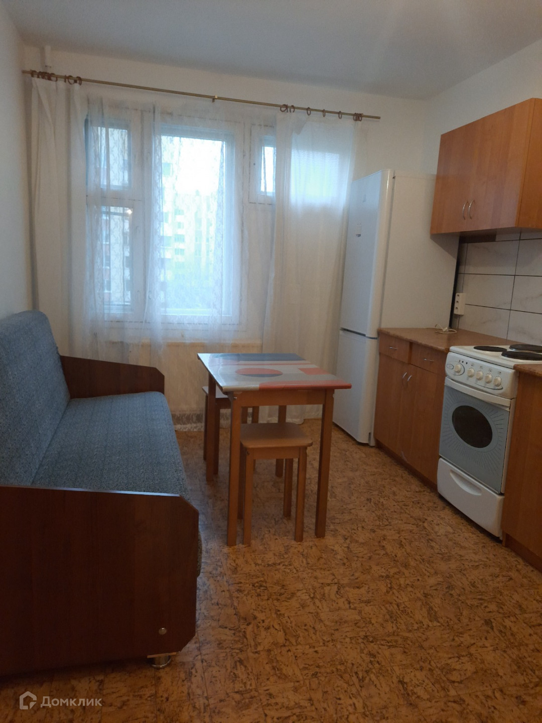 Вид из окон на просторный двор с детской и спортивной площадкой. Рядом школа, институт, парки, магазины. От станции Старый Петергоф 15 минут ходьбы.