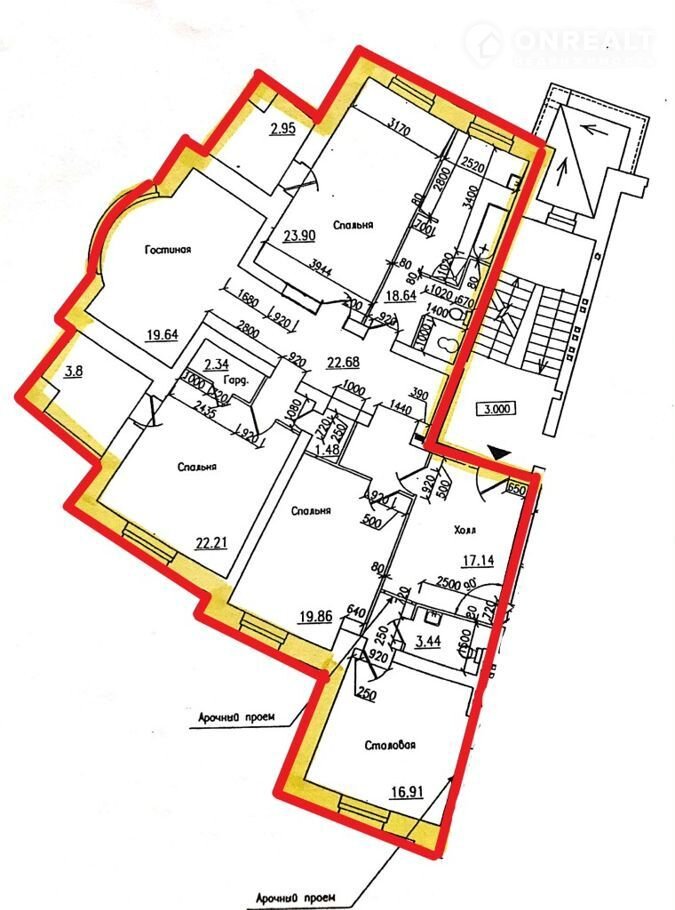cпальни - 19,86+22,21+23,90 кв.м,