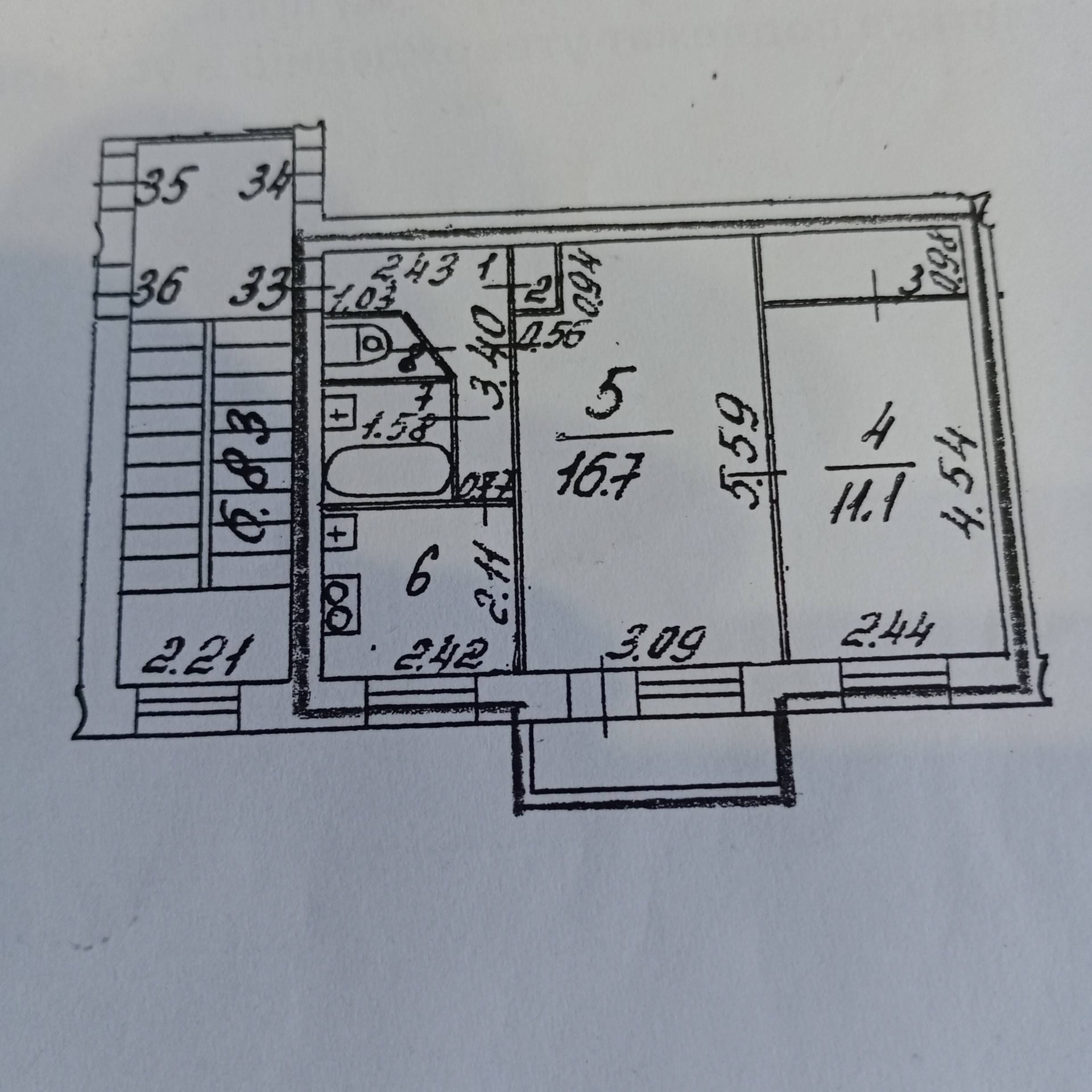 Общая площадь 44.2 м2