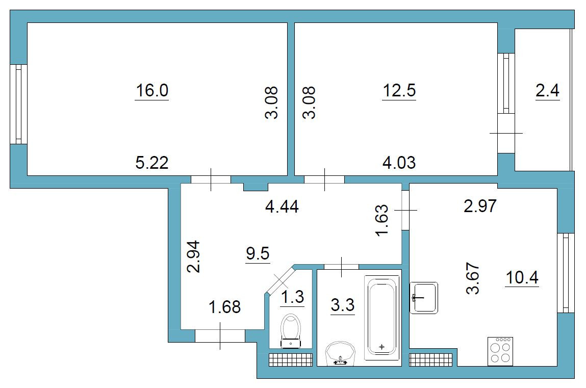 Общая площадь 53 м2