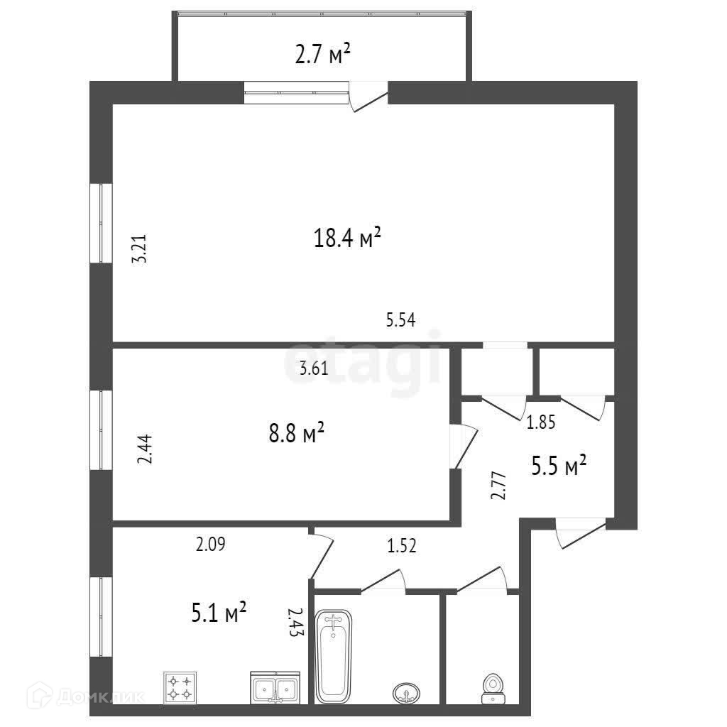 Площадь кухни 5.1 м2