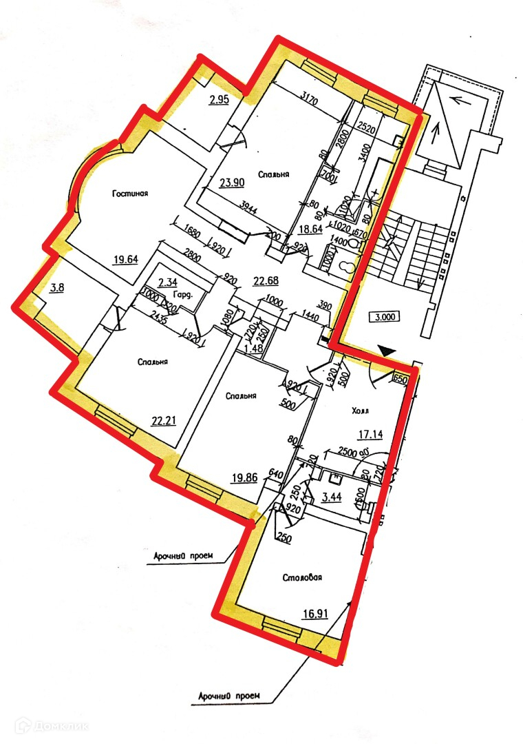 спальни - 19,86+22,21+23,90 кв.м,