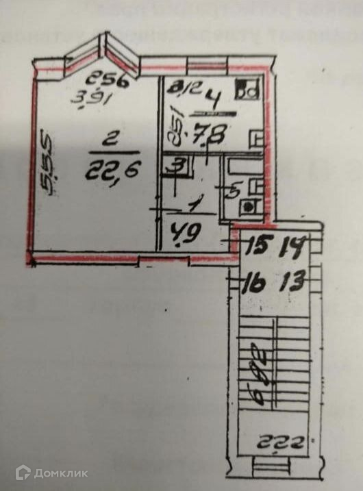 - Комната: 22,6 кв.м.