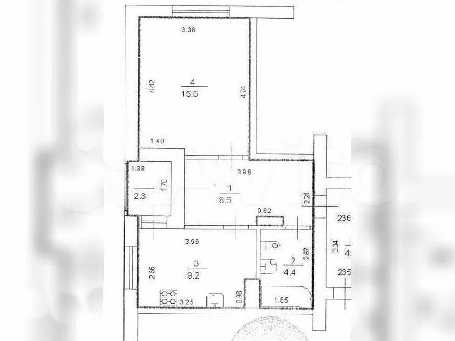 Жилая площадь 15.6 м2