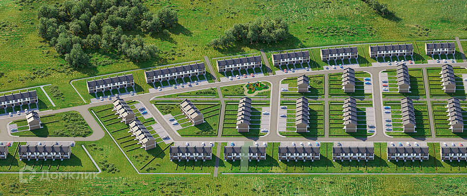 - Парковочные зоны на 2 машино-места для каждой секции таунхаусов