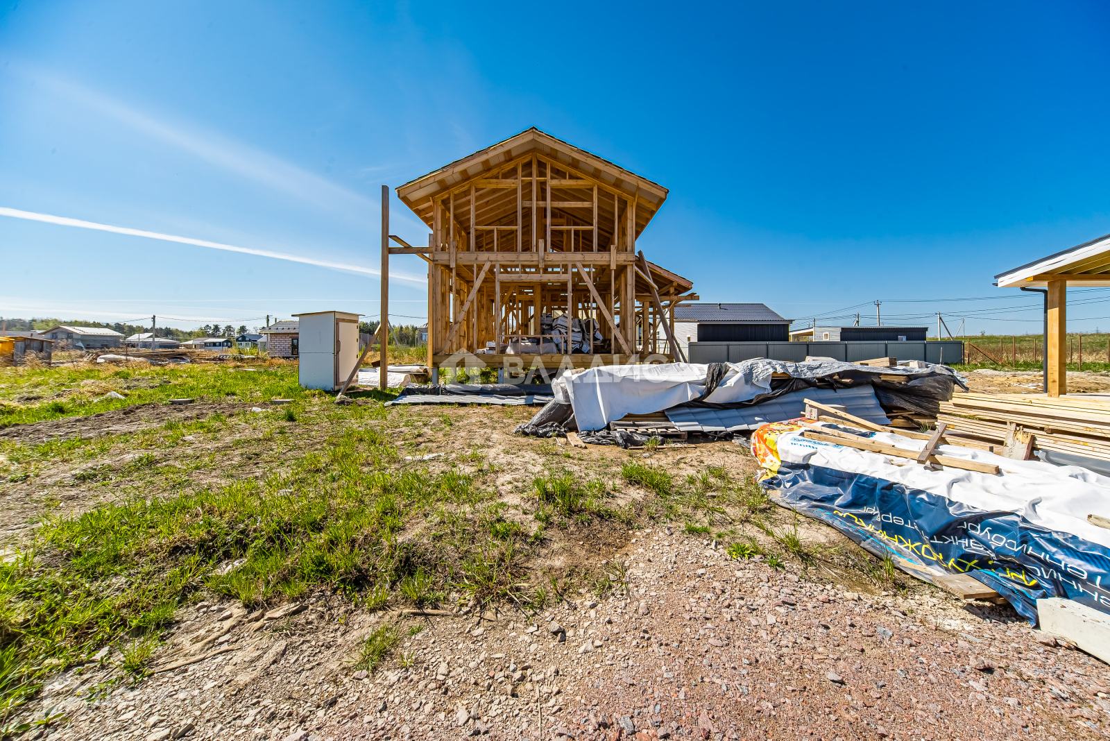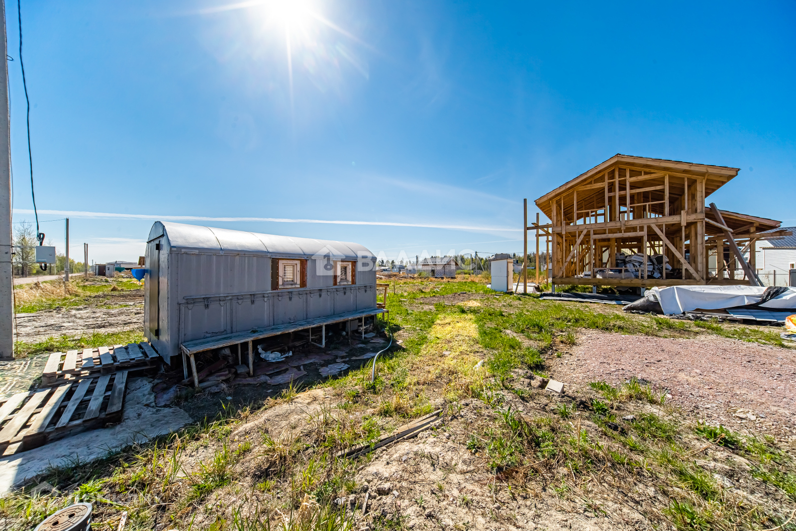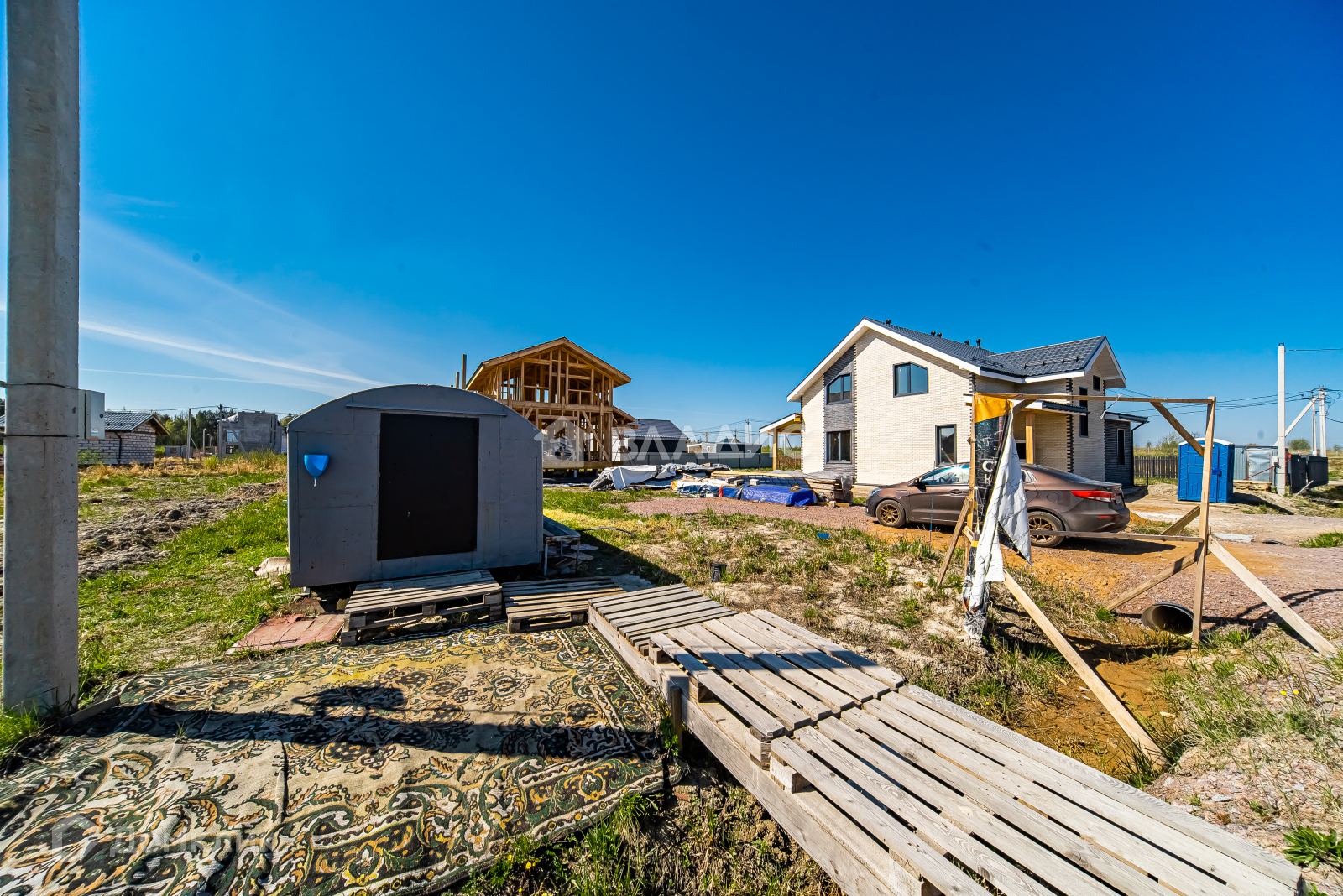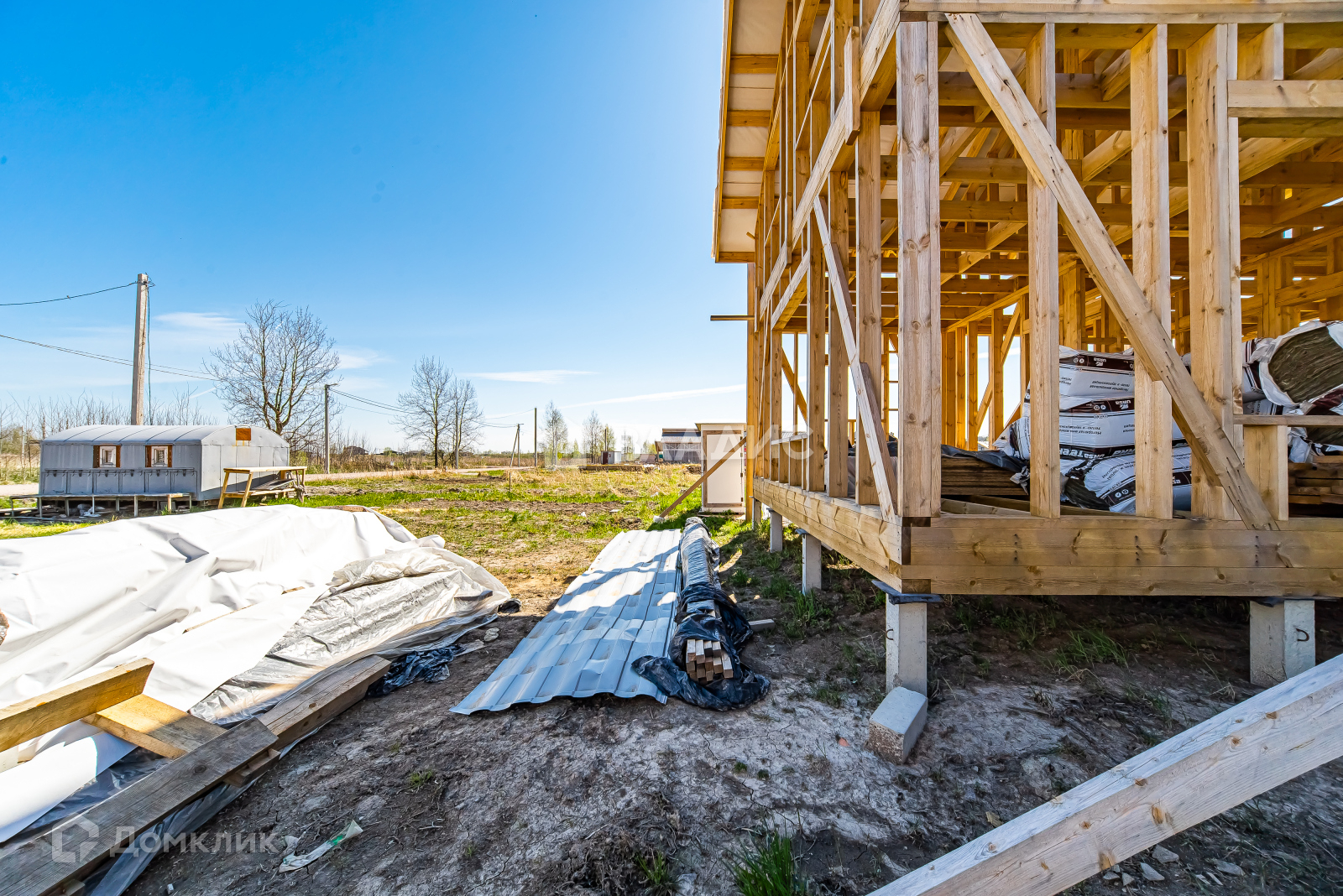 Осталось много материала в наличии для достройки дома, на территории участка есть временный уличный туалет и бытовка - все это входит в общую стоимость.