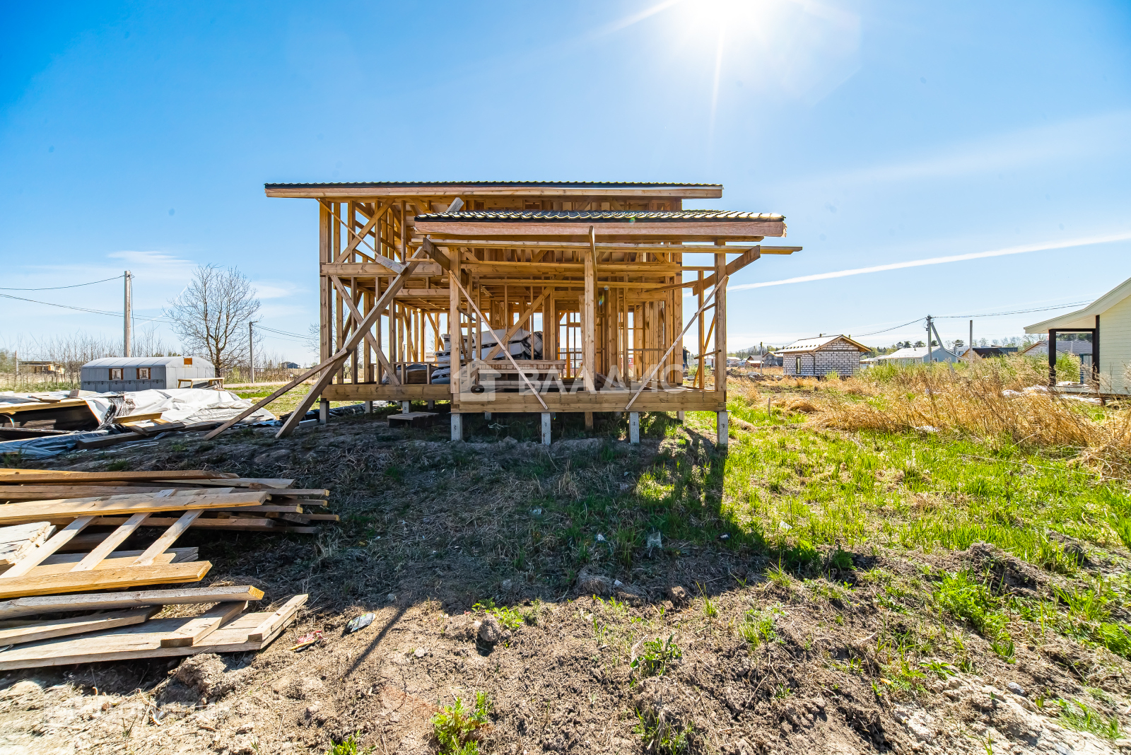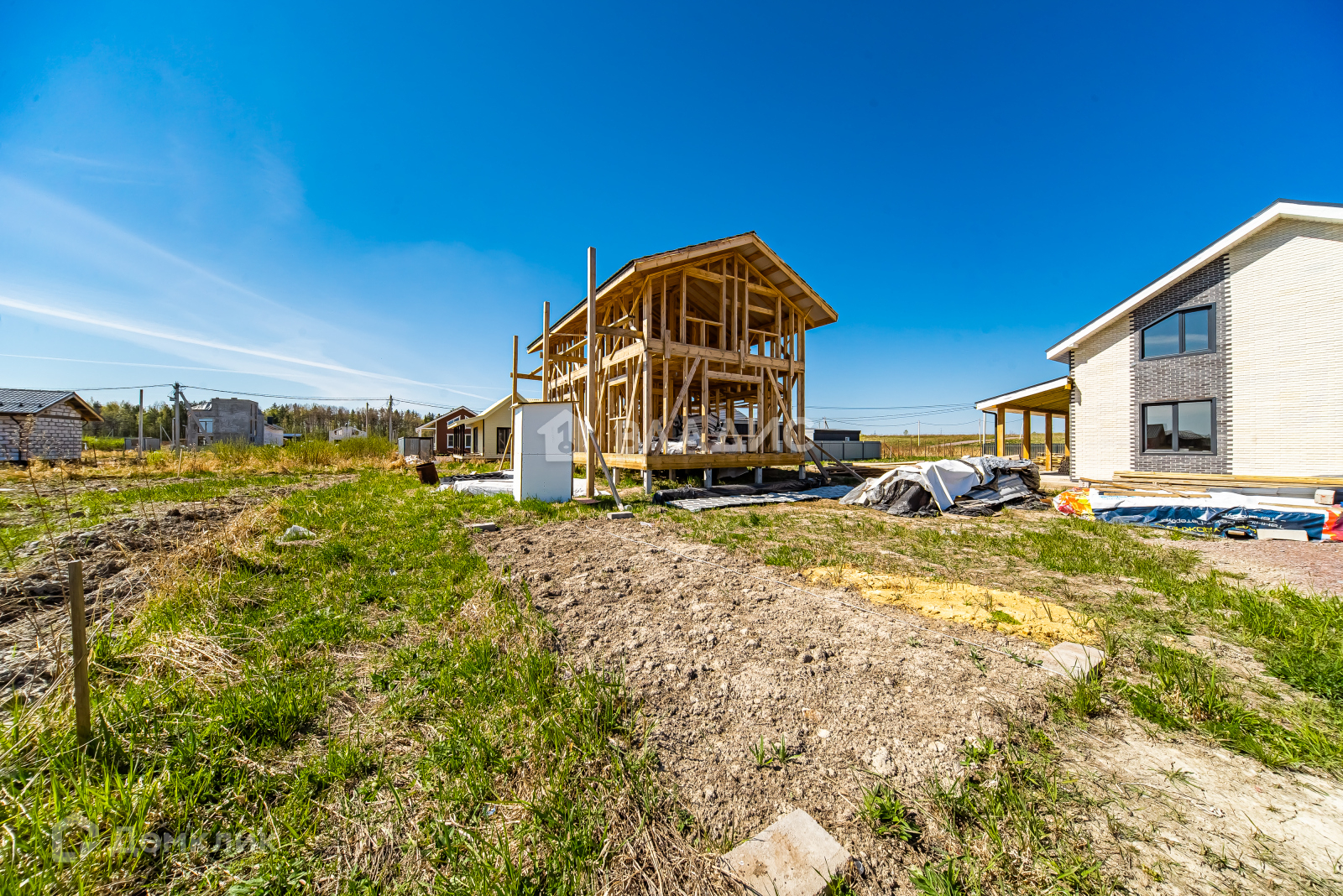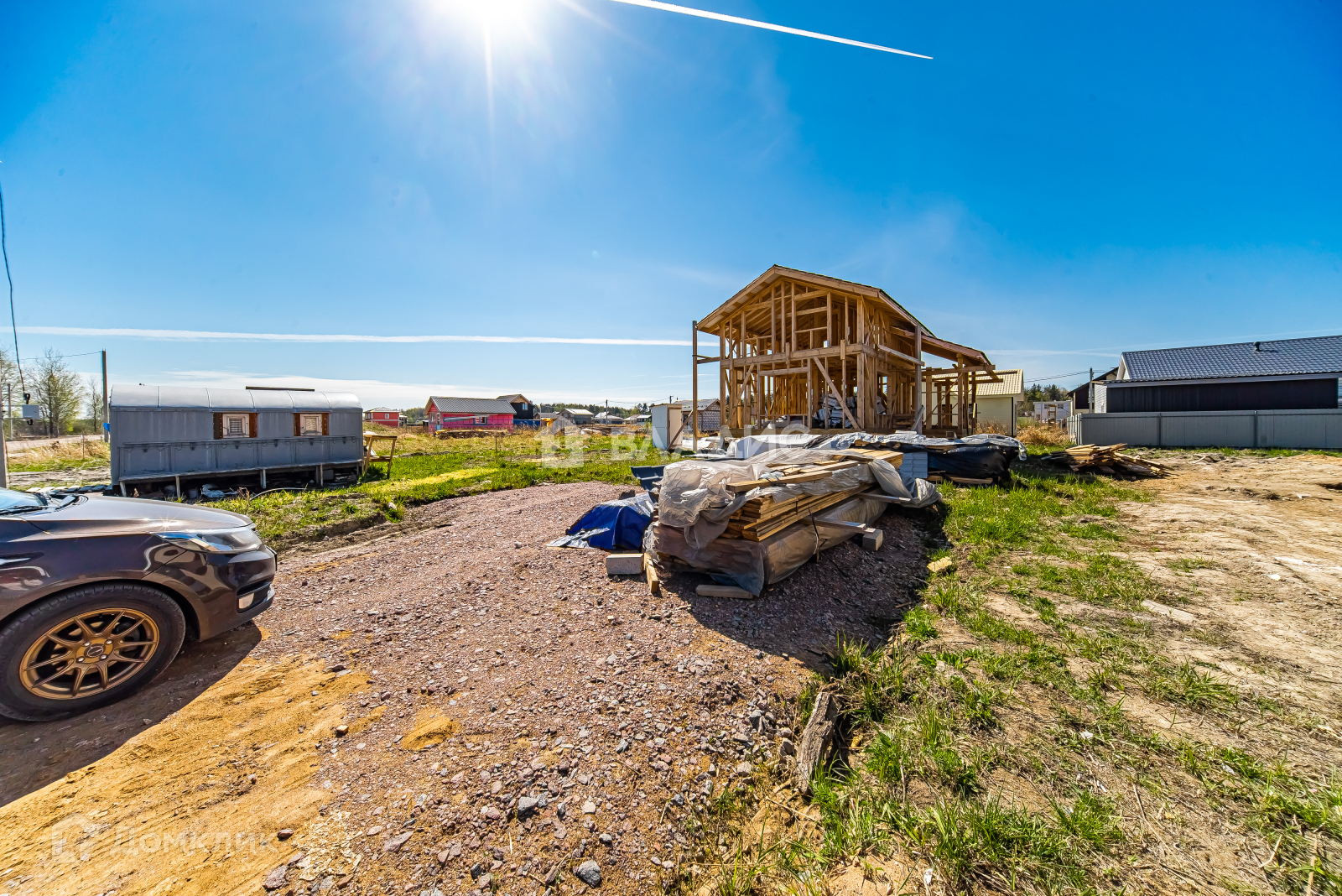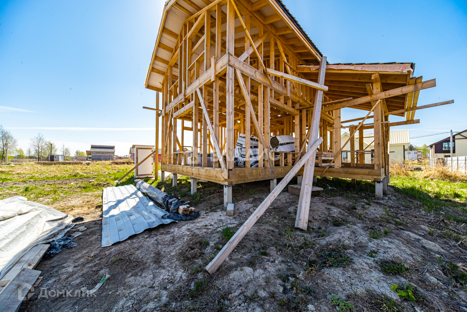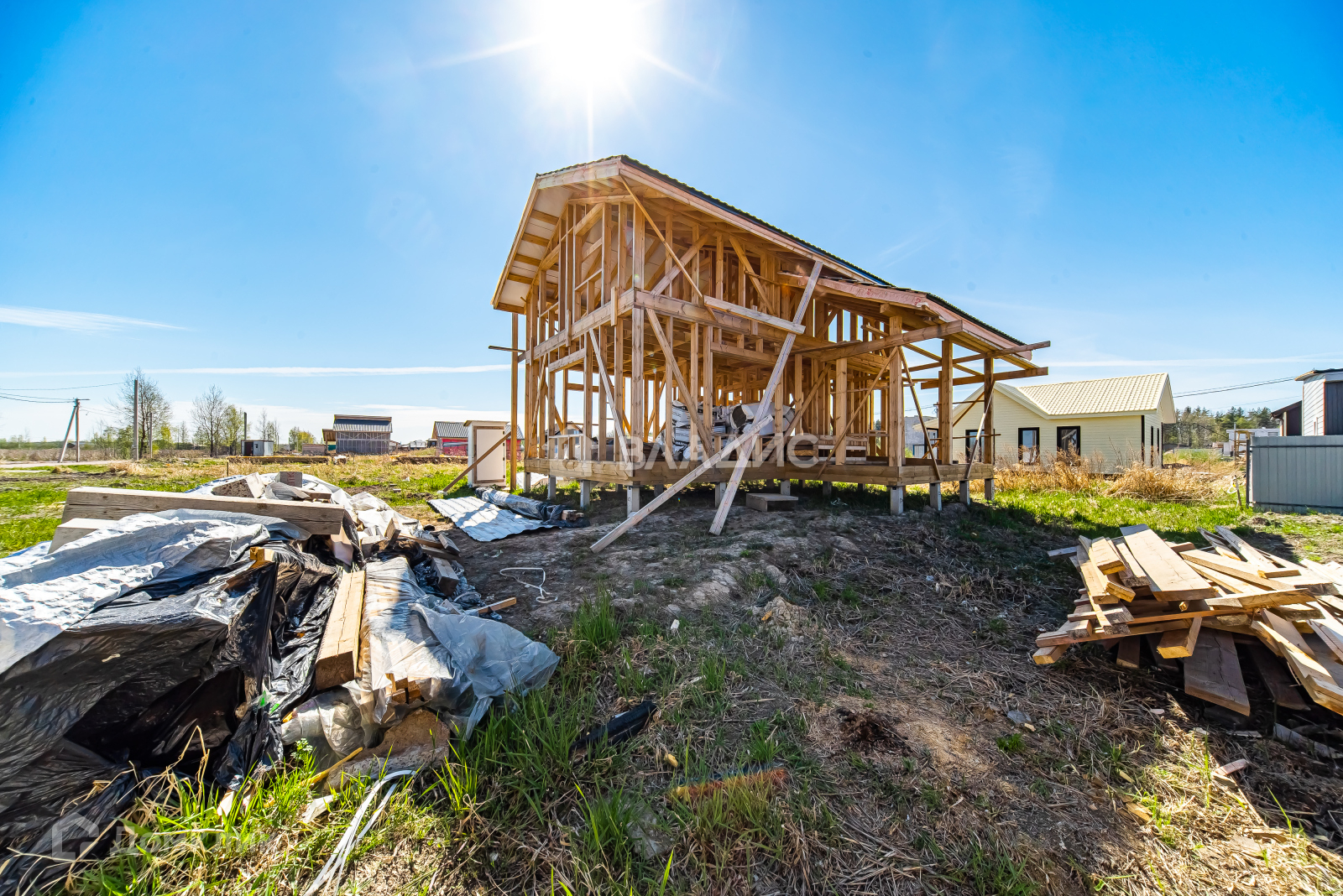 Осталось много материала в наличии для достройки дома, на территории участка есть временный уличный туалет и бытовка - все это входит в общую стоимость.