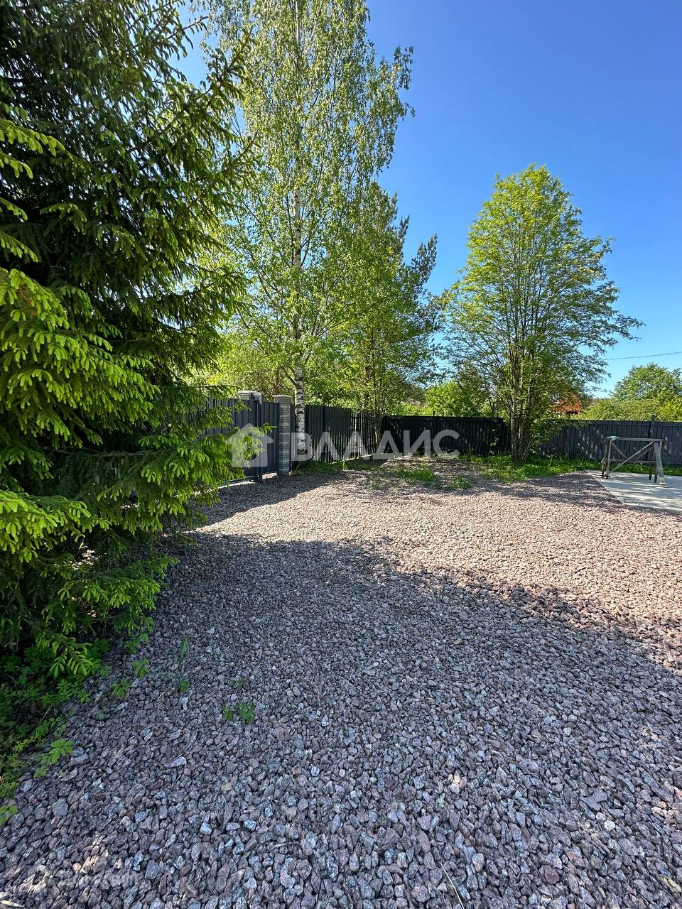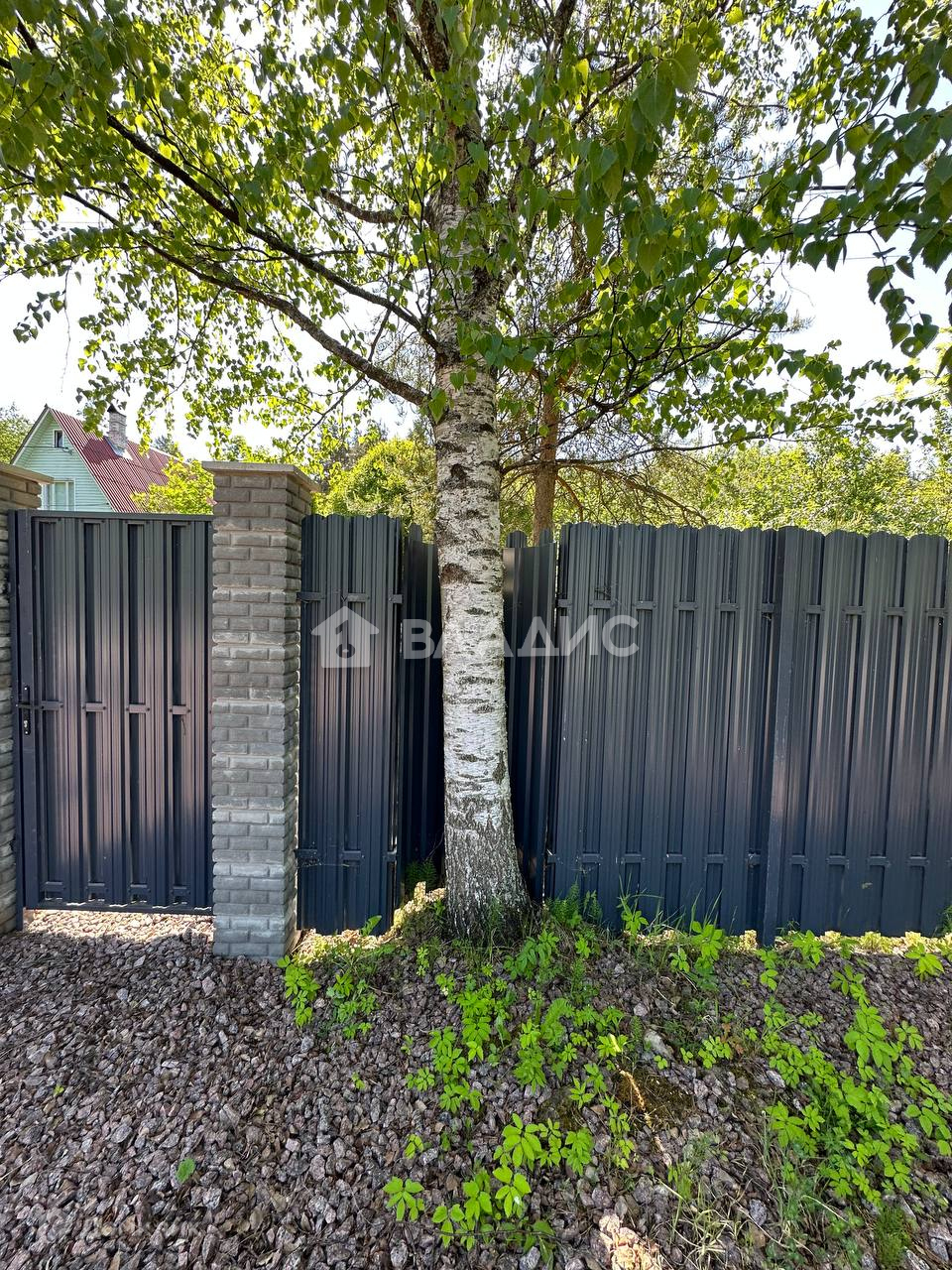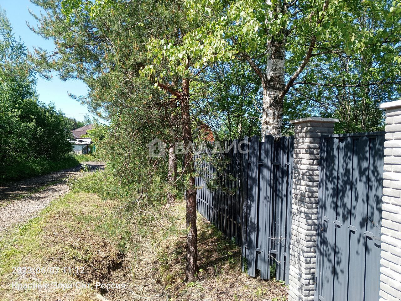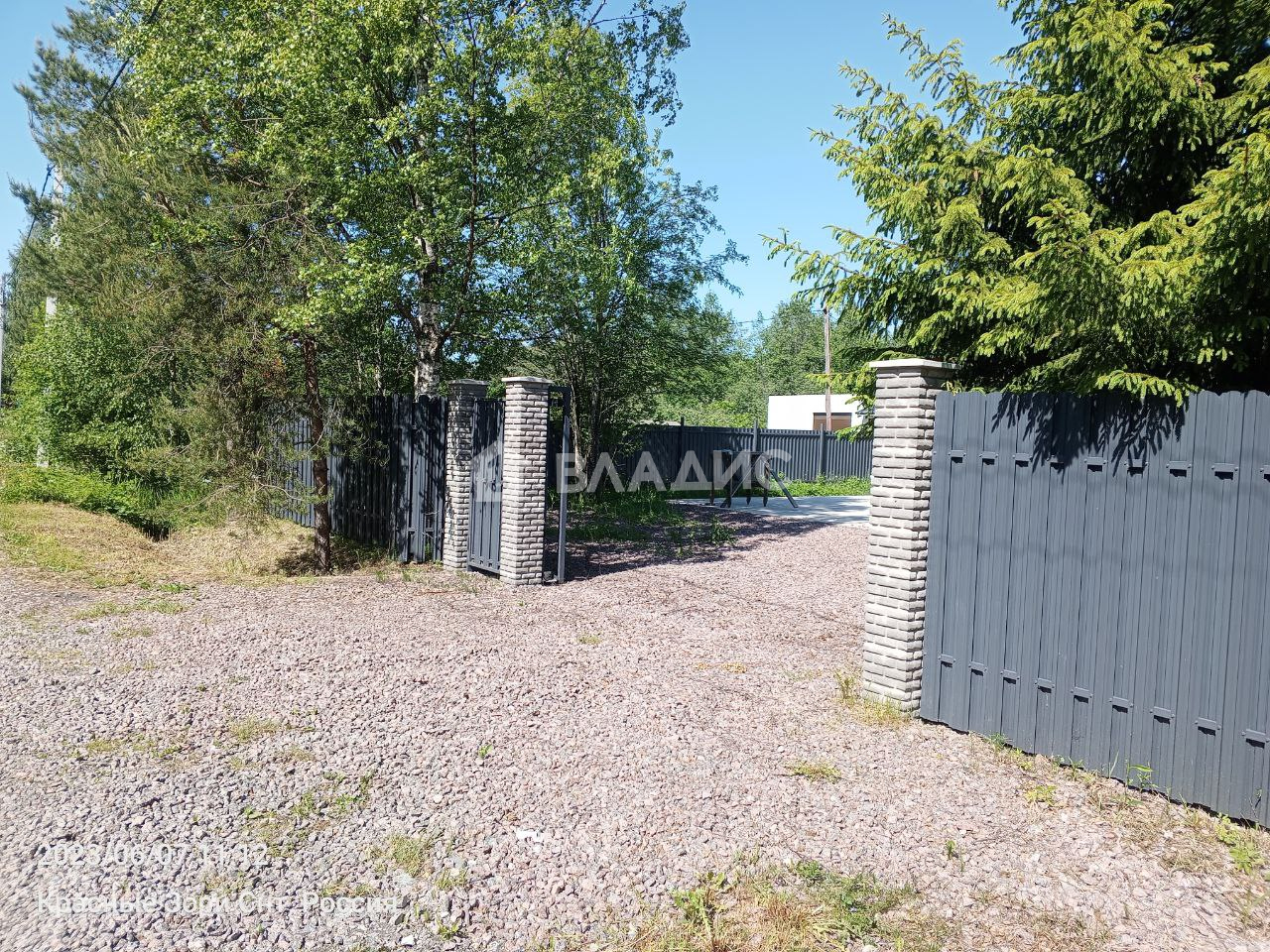 С трех сторон огорожен забором, откатные ворота, с четвертой стороны протекает речка, никогда не пересыхает.